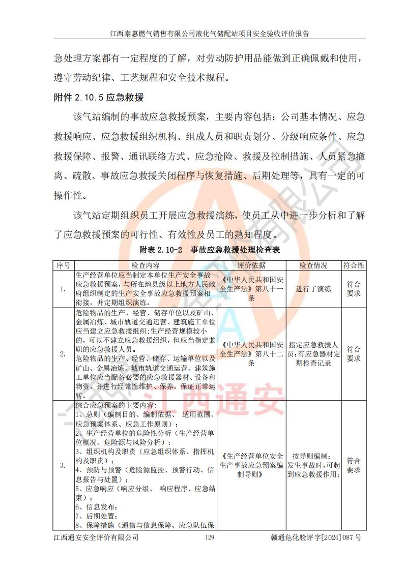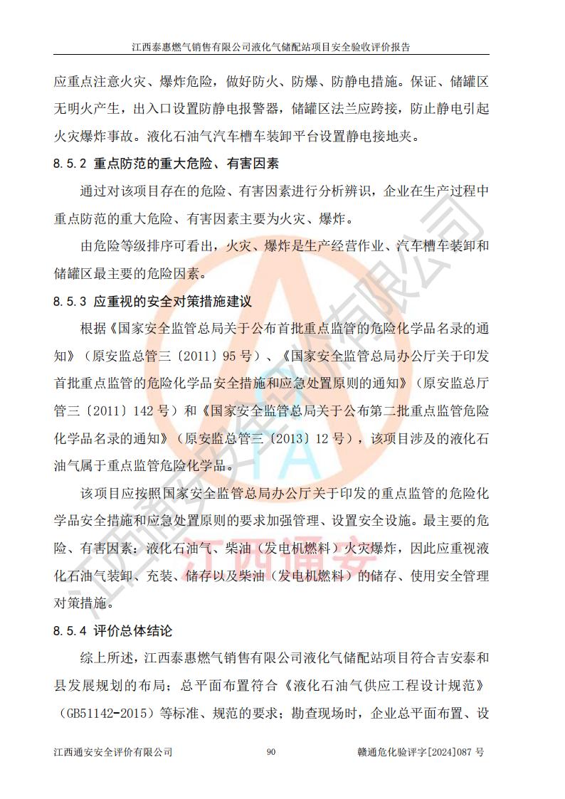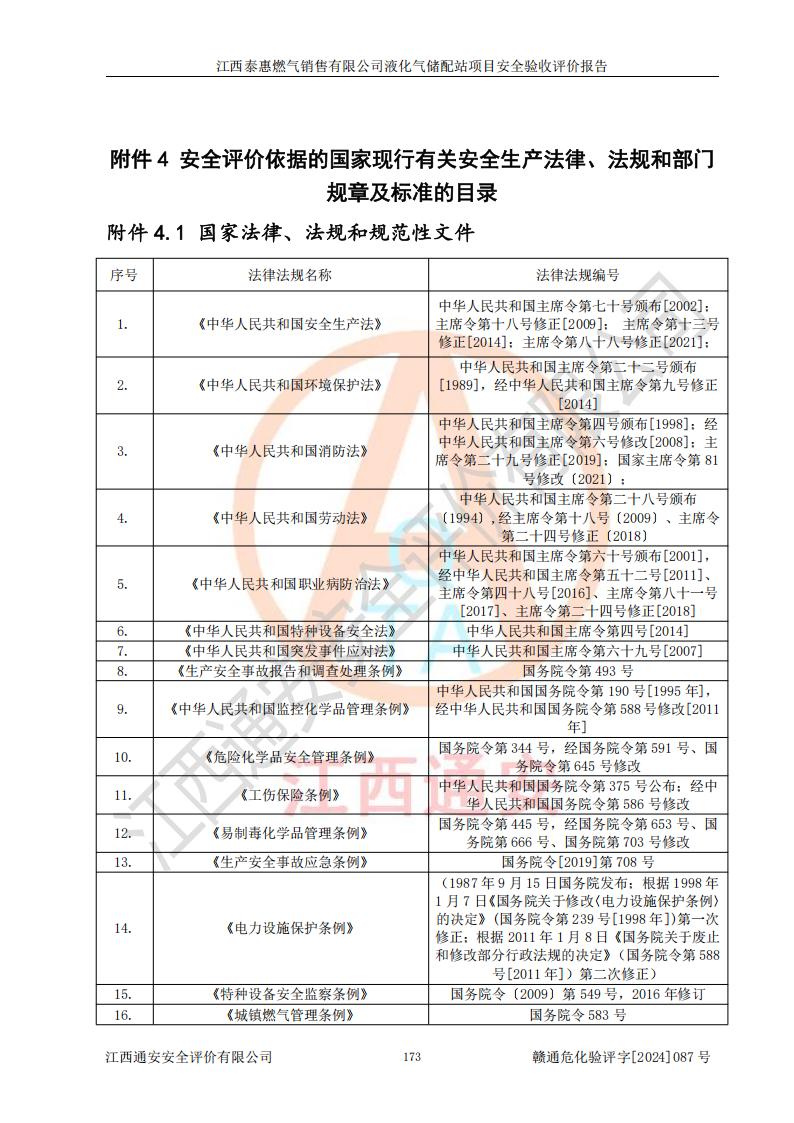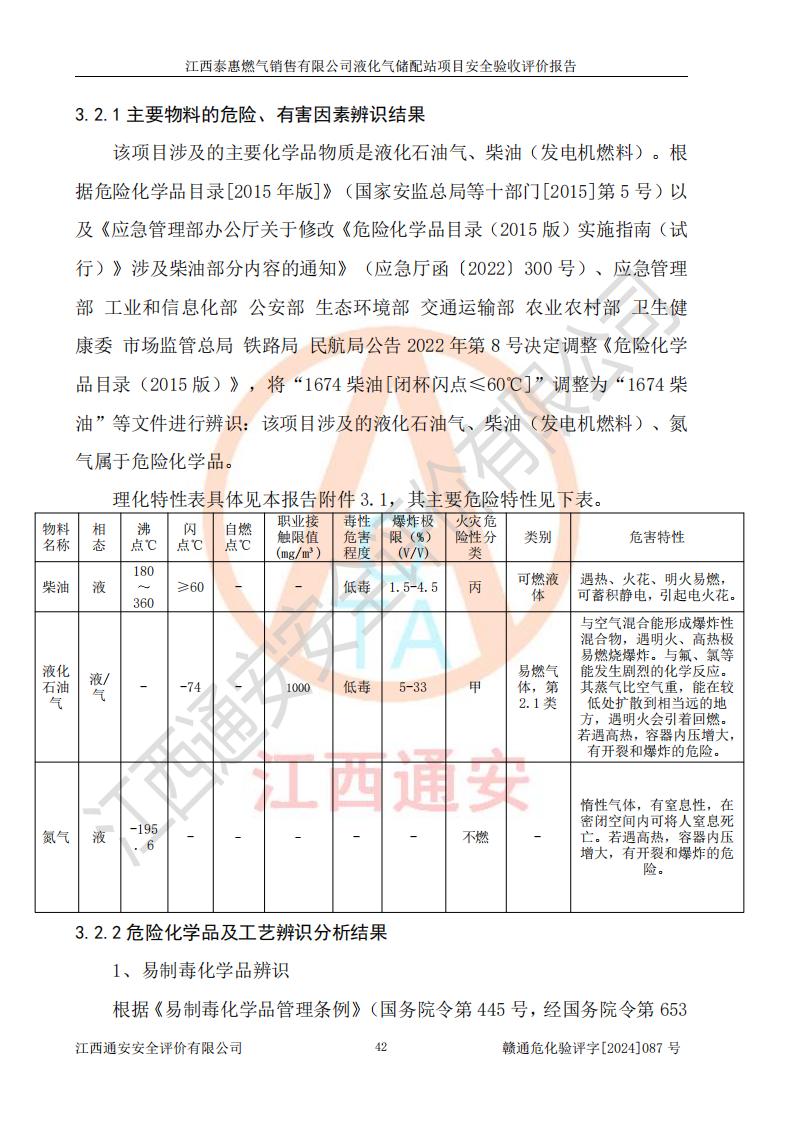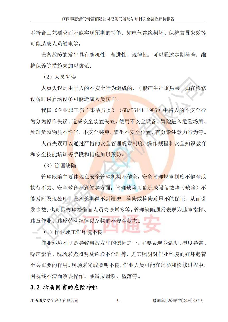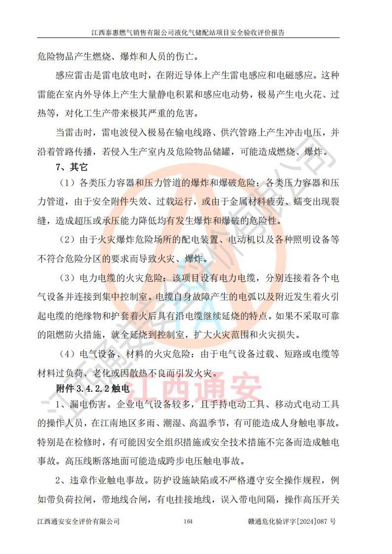 項目名稱 | 江西泰惠燃氣銷售有限公司液化氣儲配站項目安全驗收評價報告 | ||||