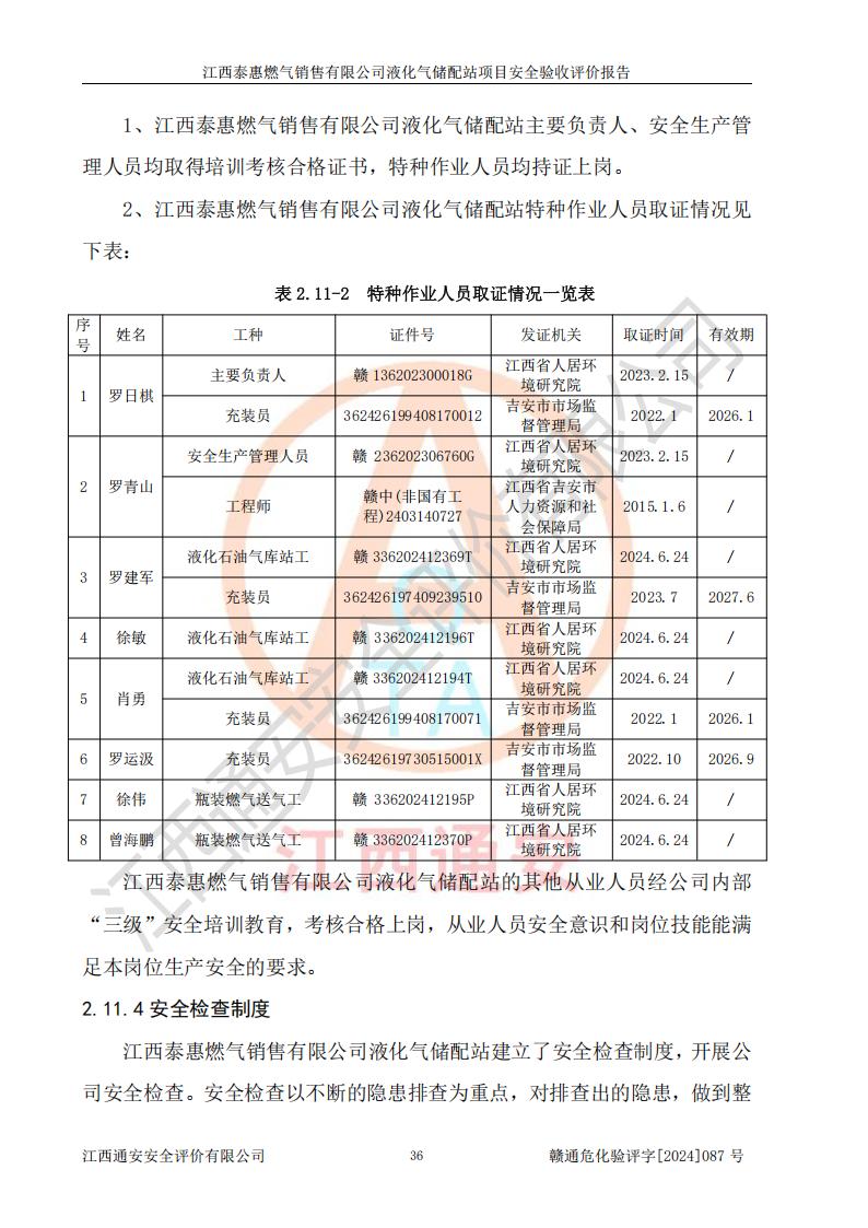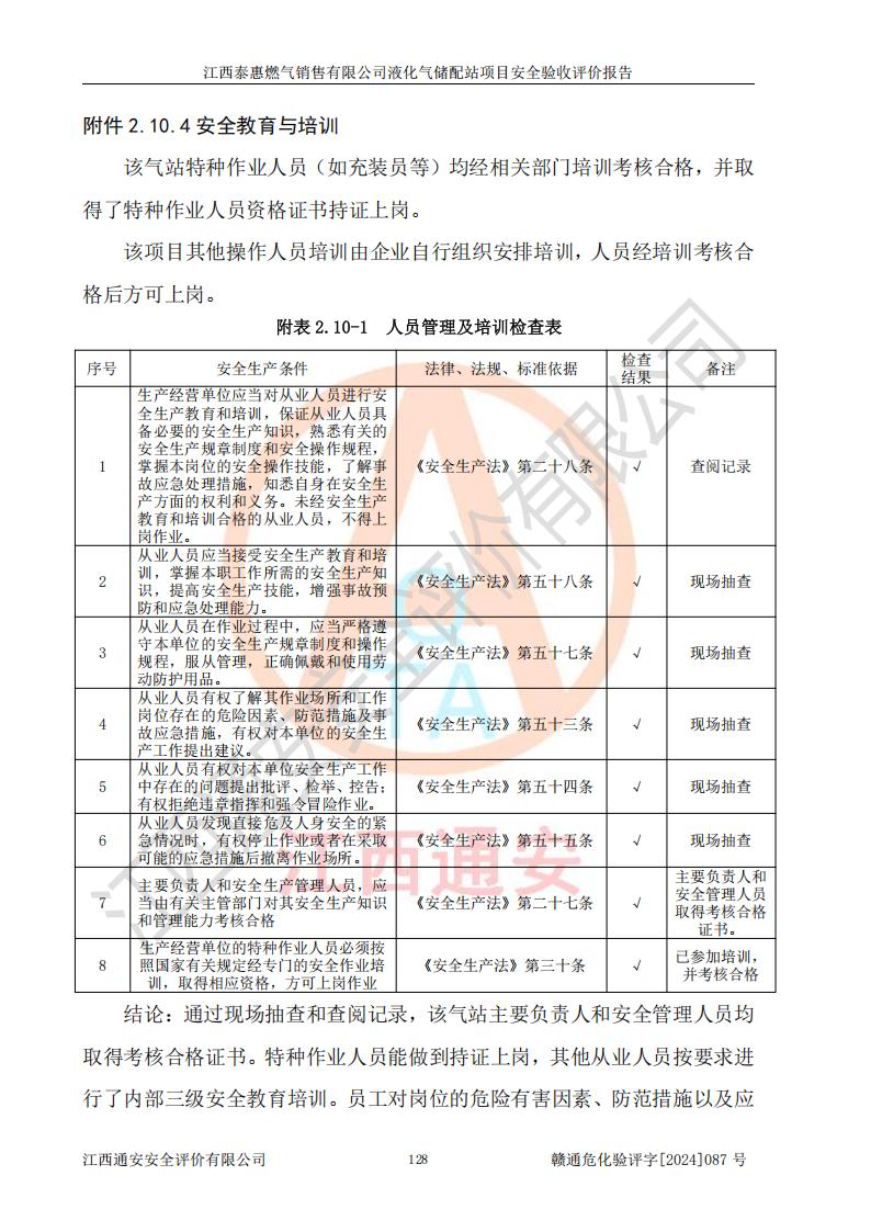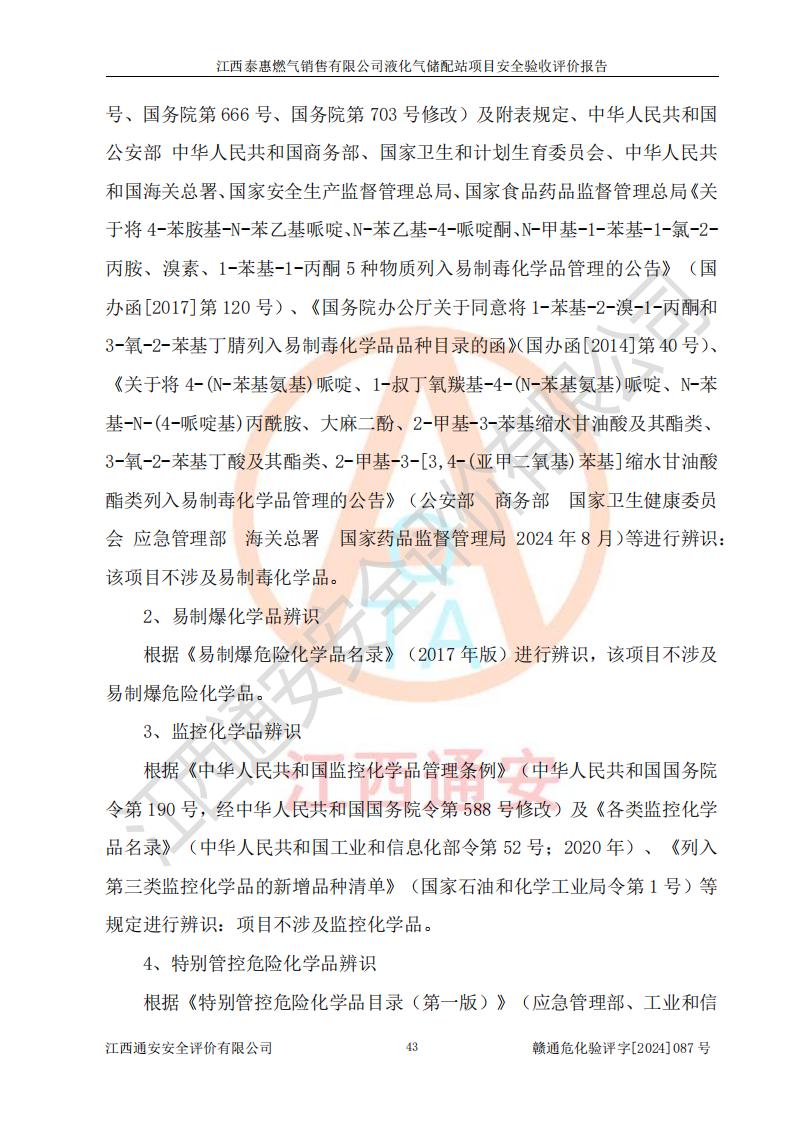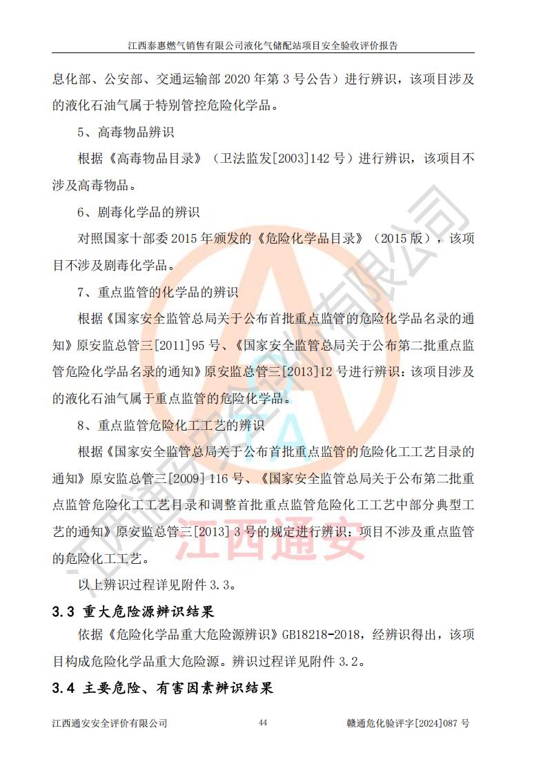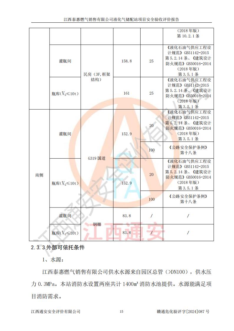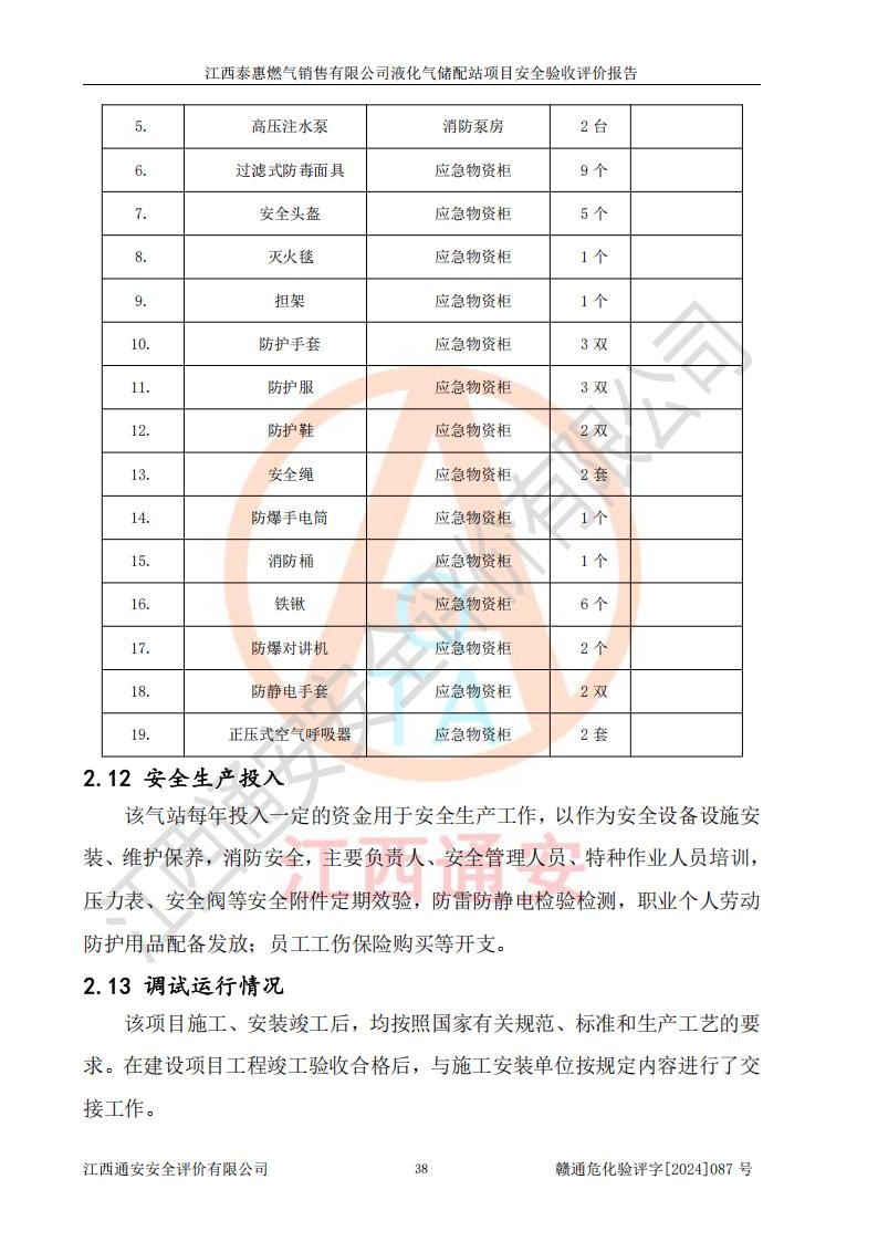 項目名稱 | 江西泰惠燃氣銷售有限公司液化氣儲配站項目安全驗收評價報告 | ||||
