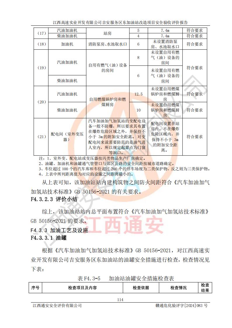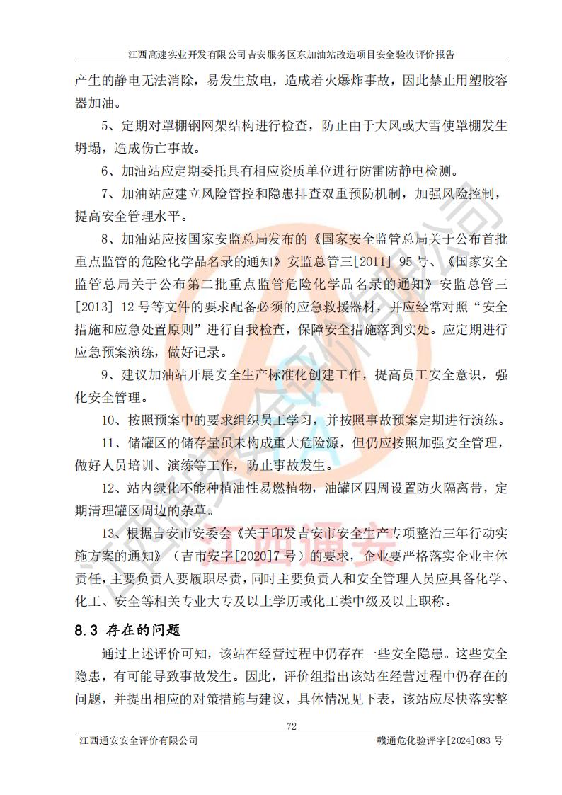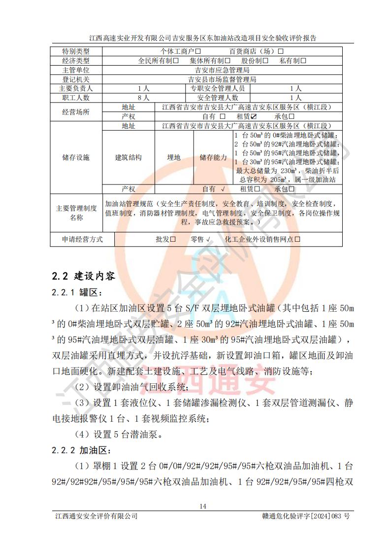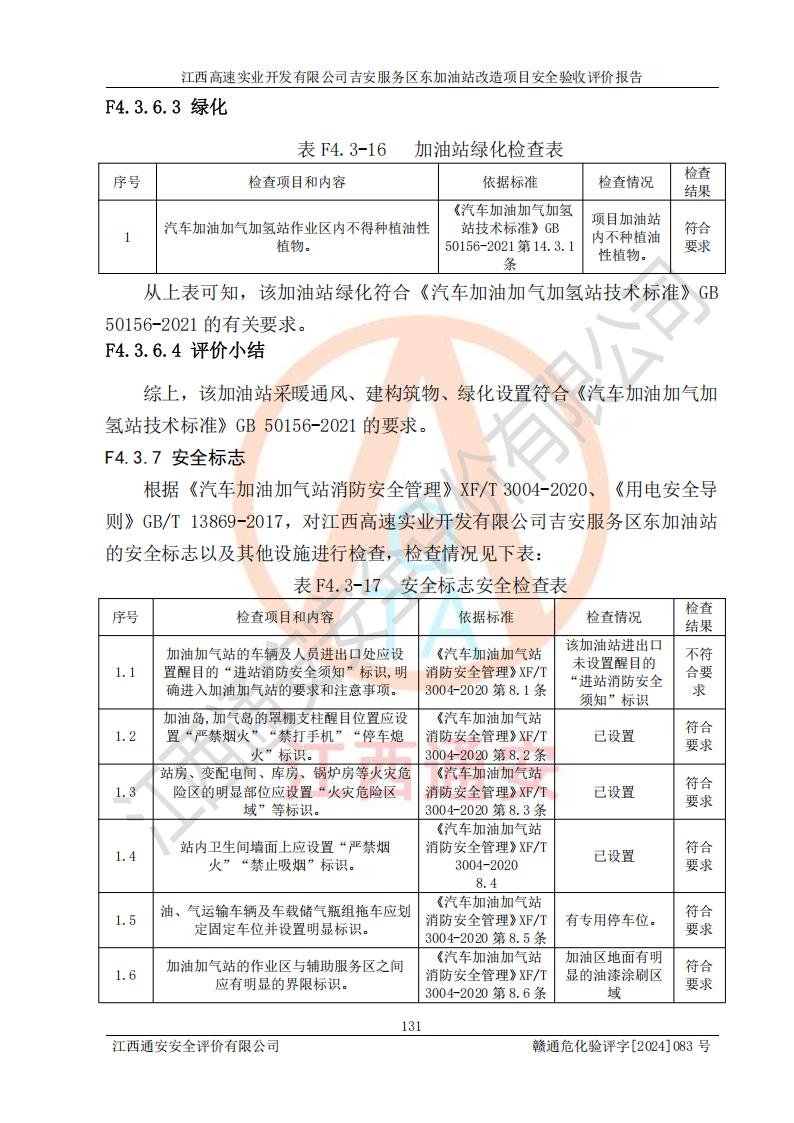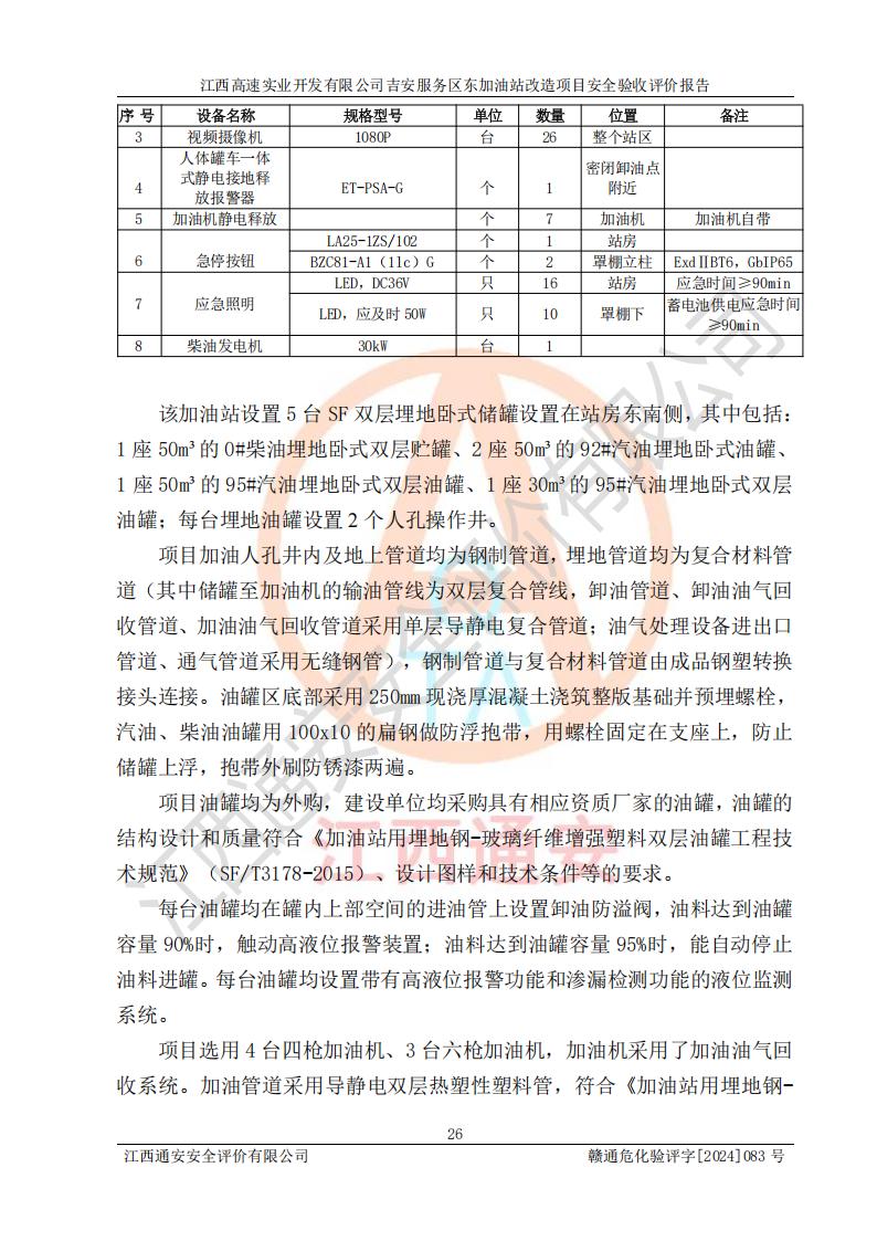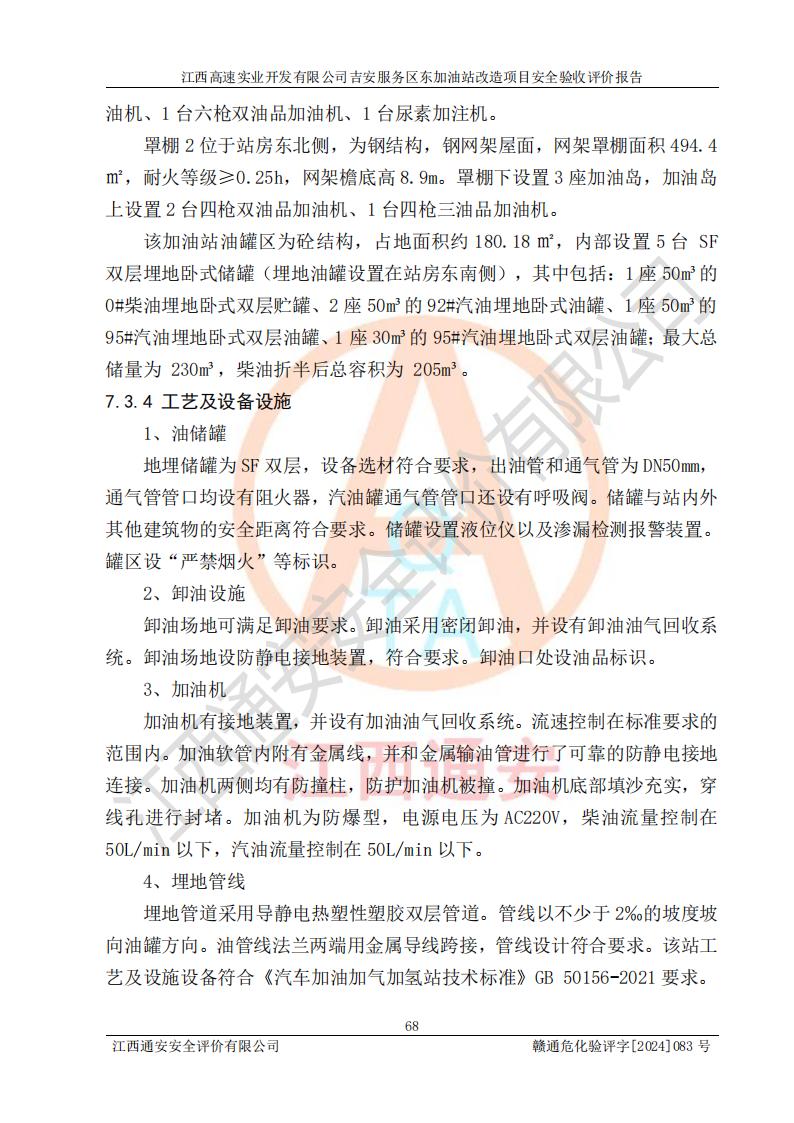 評價報告名稱 | 江西高速實業(yè)開發(fā)有限公司吉安服務(wù)區(qū)東加油站改造項目安全驗收狀評價報告 | |||