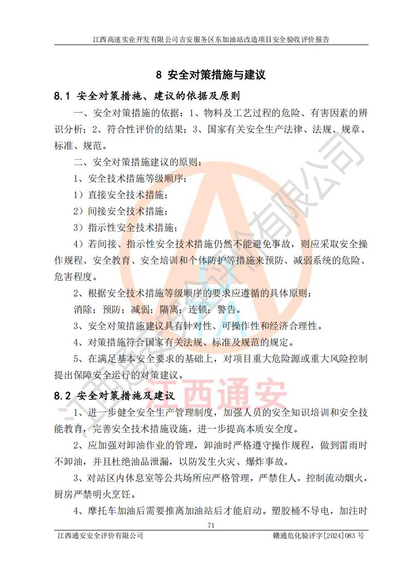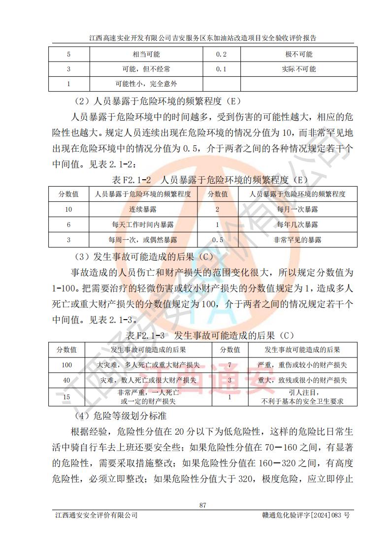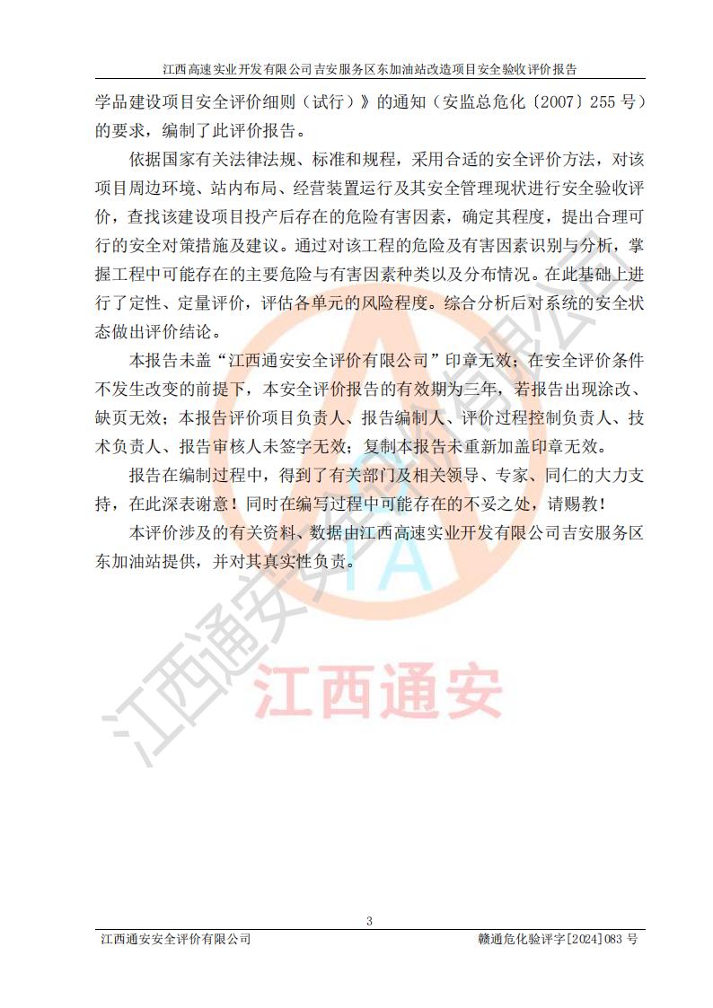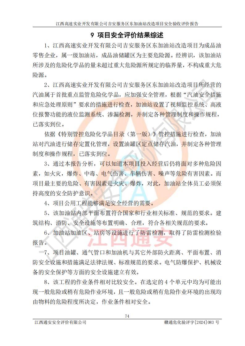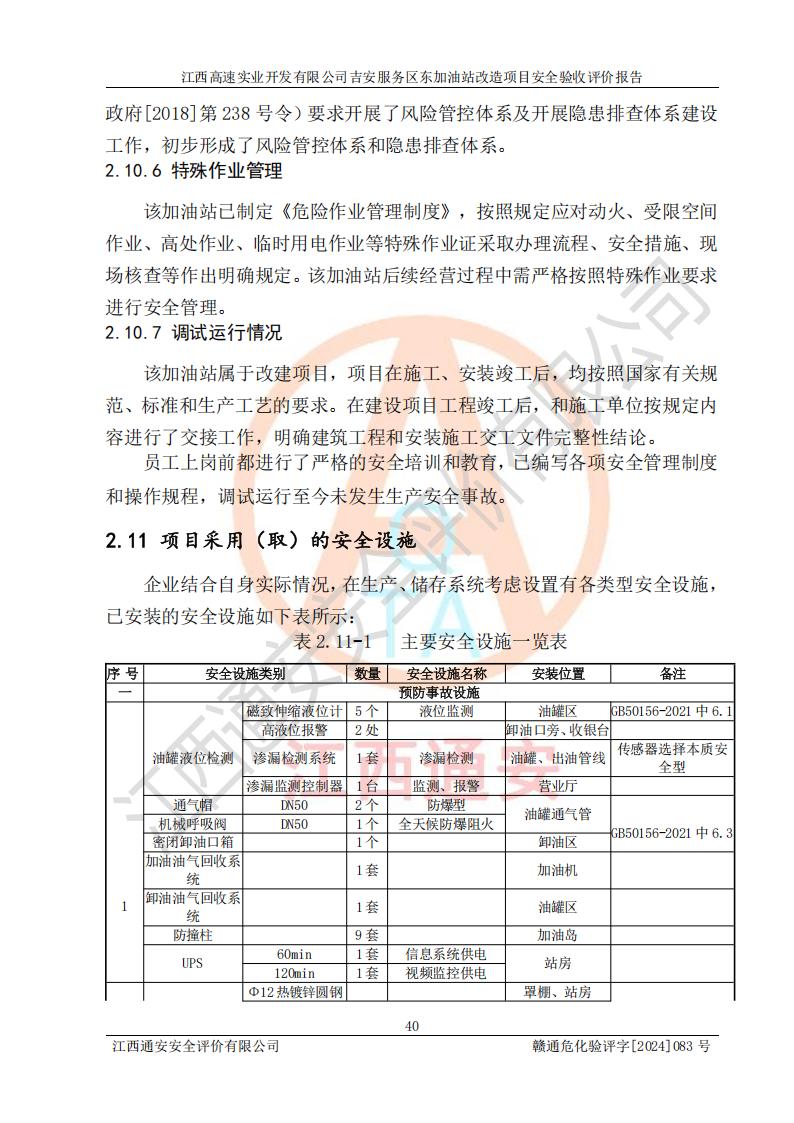 評價報告名稱 | 江西高速實業(yè)開發(fā)有限公司吉安服務(wù)區(qū)東加油站改造項目安全驗收狀評價報告 | |||