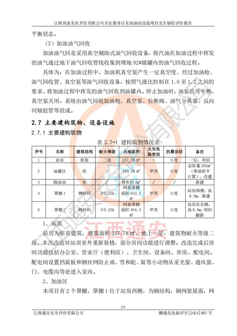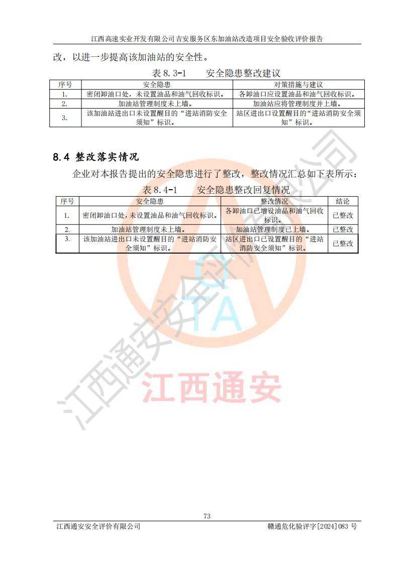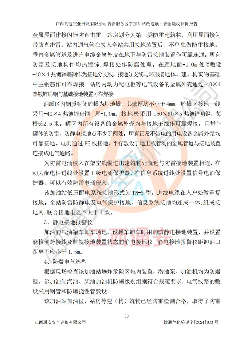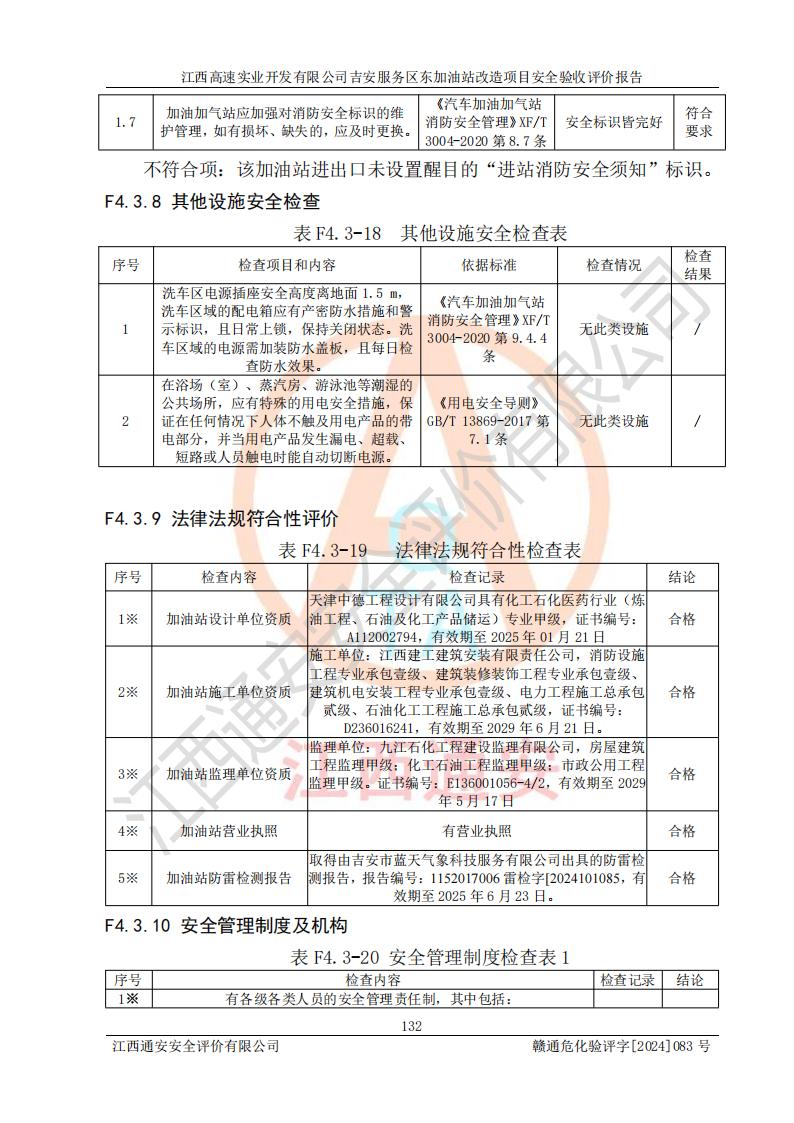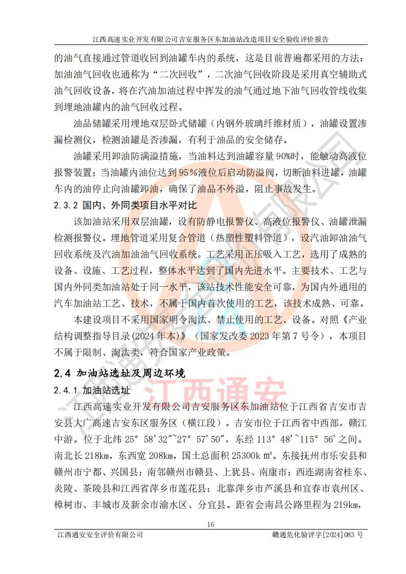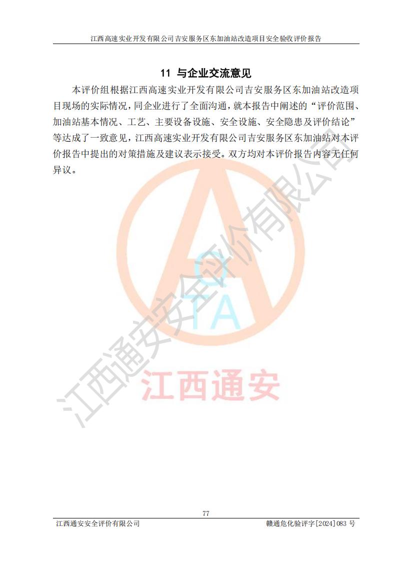 評價報告名稱 | 江西高速實業(yè)開發(fā)有限公司吉安服務(wù)區(qū)東加油站改造項目安全驗收狀評價報告 | |||