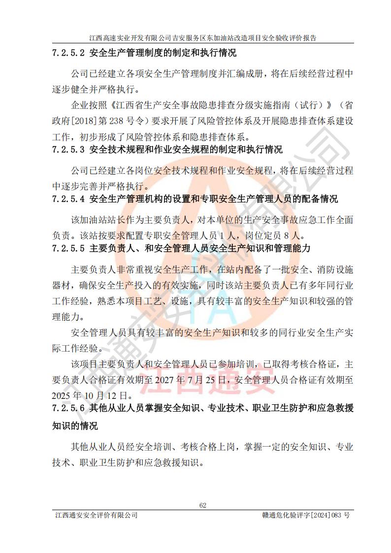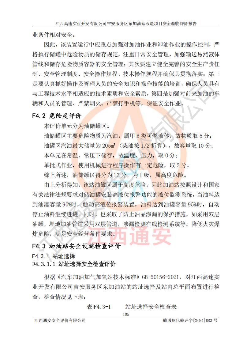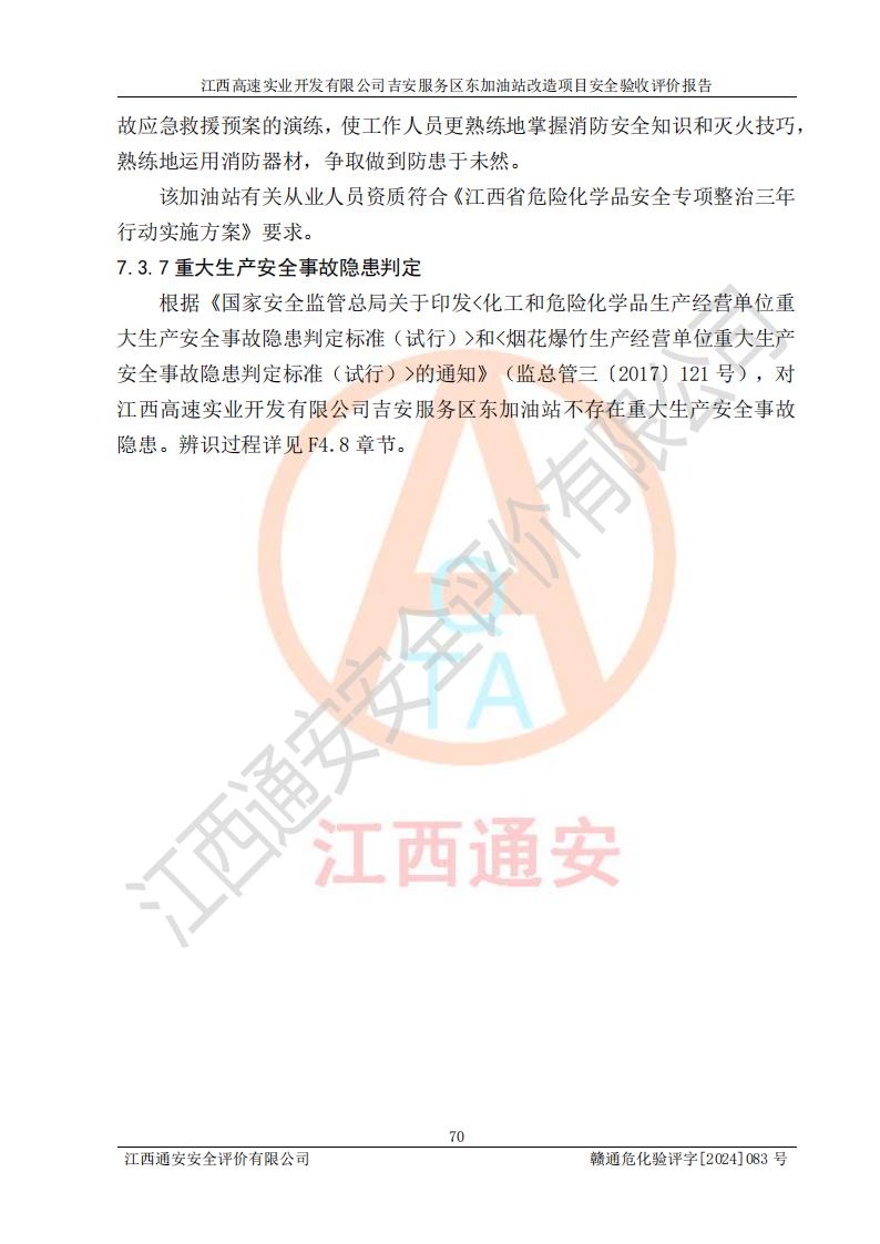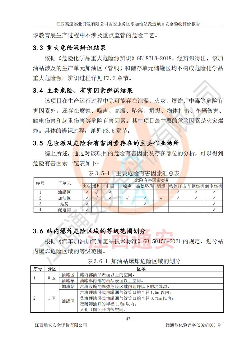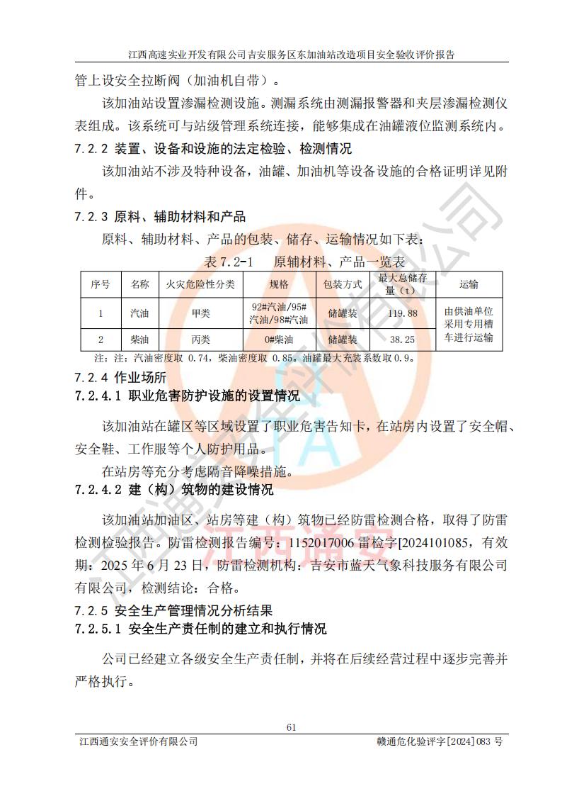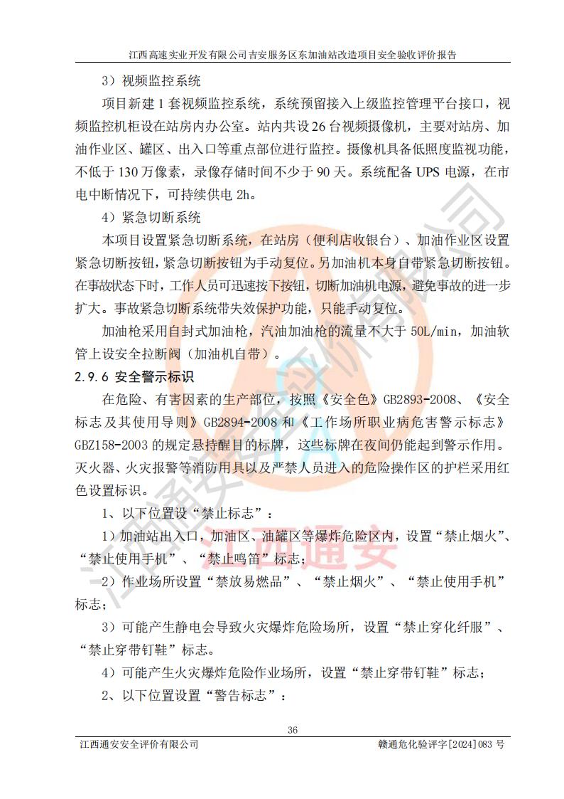 評價報告名稱 | 江西高速實業(yè)開發(fā)有限公司吉安服務(wù)區(qū)東加油站改造項目安全驗收狀評價報告 | |||