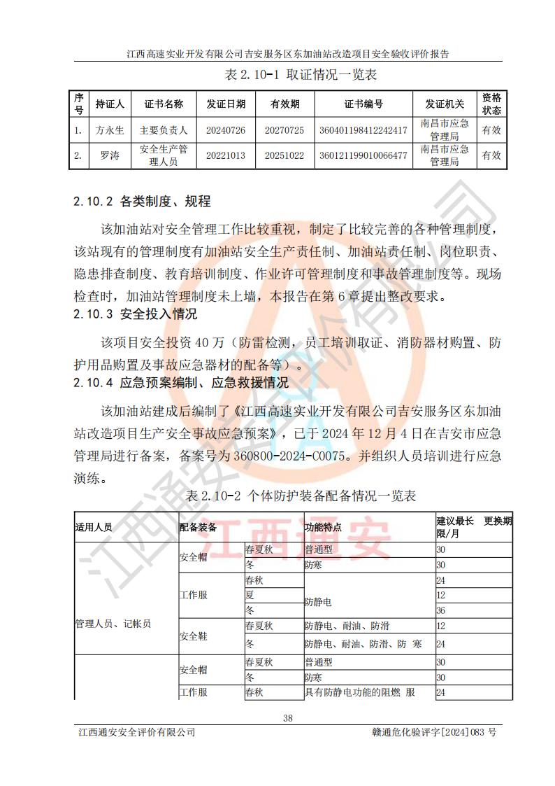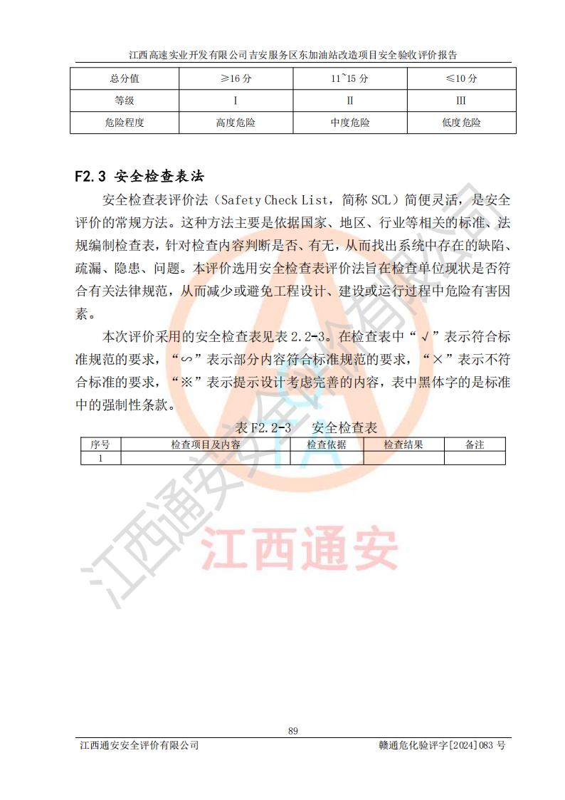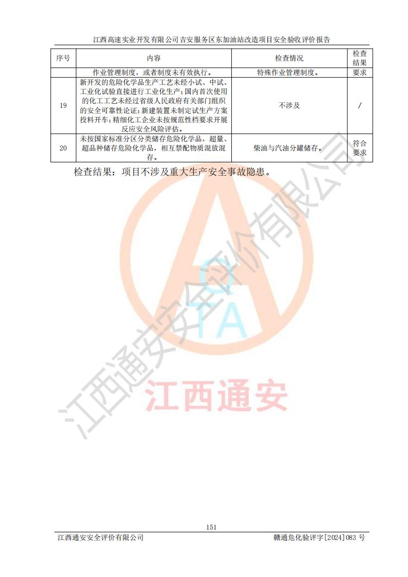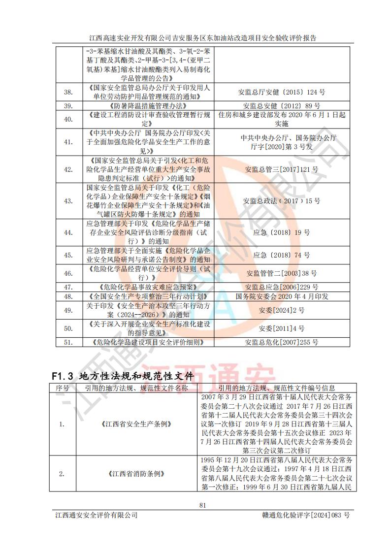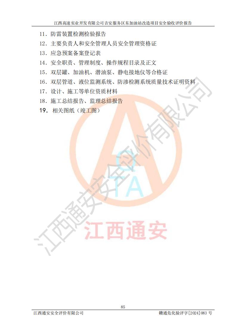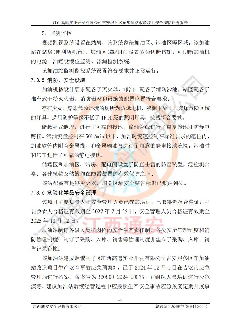 評價報告名稱 | 江西高速實業(yè)開發(fā)有限公司吉安服務(wù)區(qū)東加油站改造項目安全驗收狀評價報告 | |||