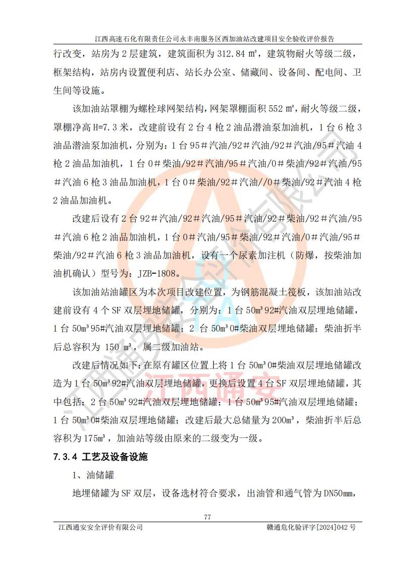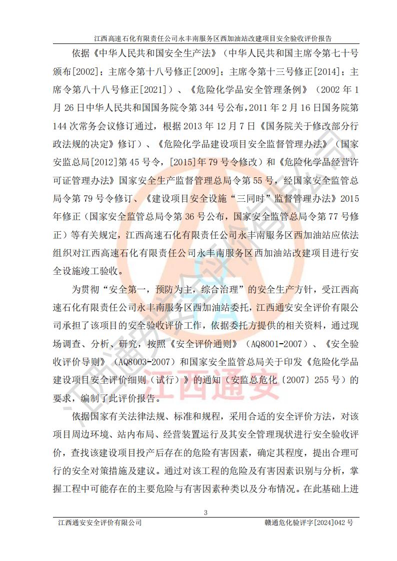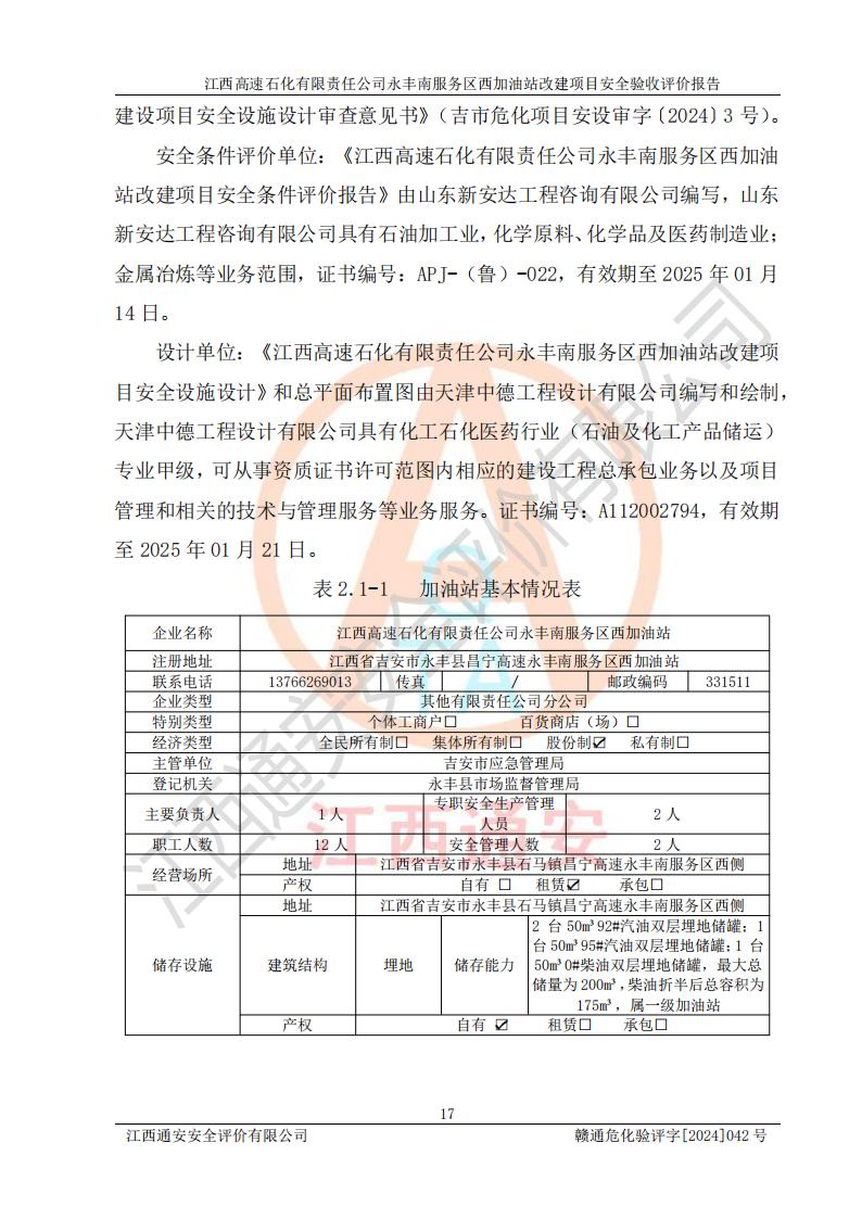 評(píng)價(jià)報(bào)告名稱 | 江西高速石化有限責(zé)任公司永豐南服務(wù)區(qū)西加油站改建項(xiàng)目安全驗(yàn)收評(píng)價(jià)報(bào)告 | |||