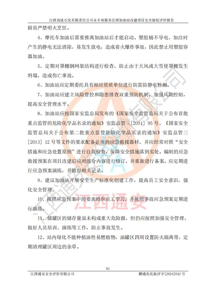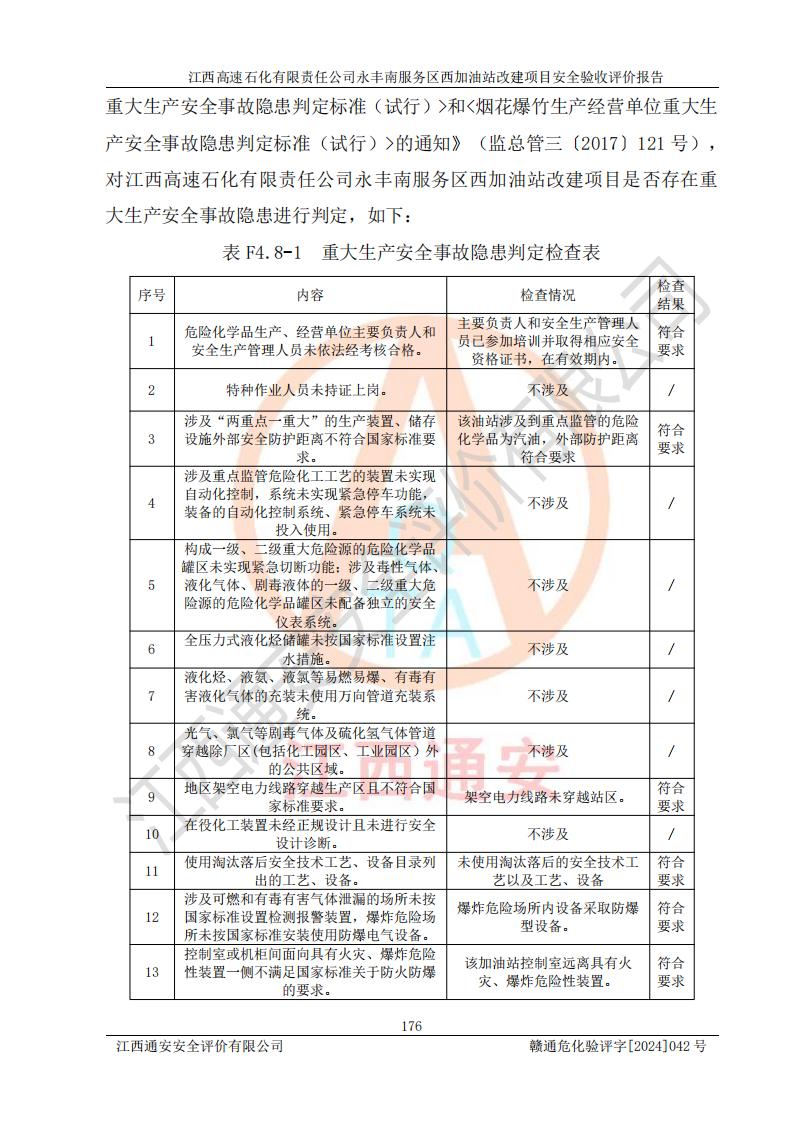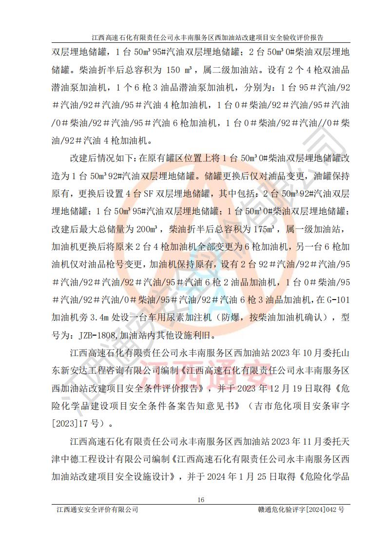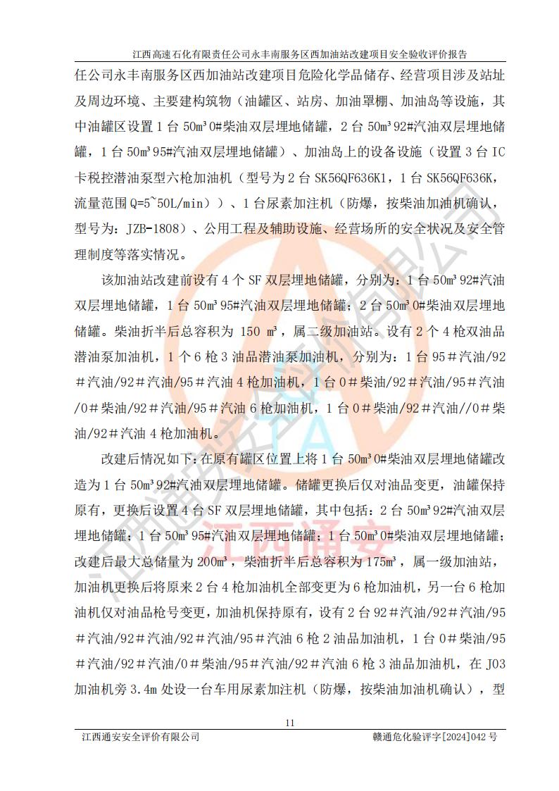 評(píng)價(jià)報(bào)告名稱 | 江西高速石化有限責(zé)任公司永豐南服務(wù)區(qū)西加油站改建項(xiàng)目安全驗(yàn)收評(píng)價(jià)報(bào)告 | |||