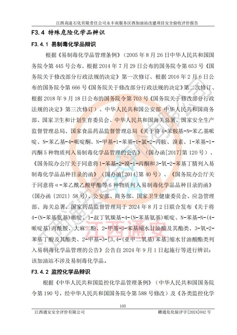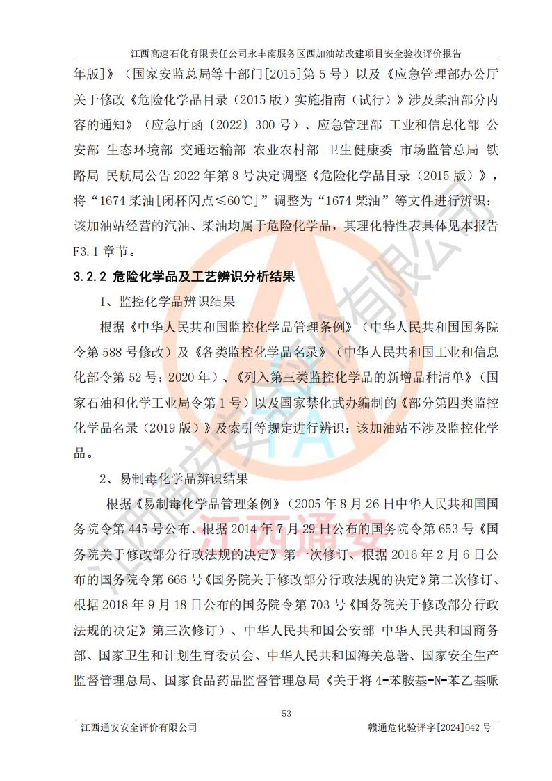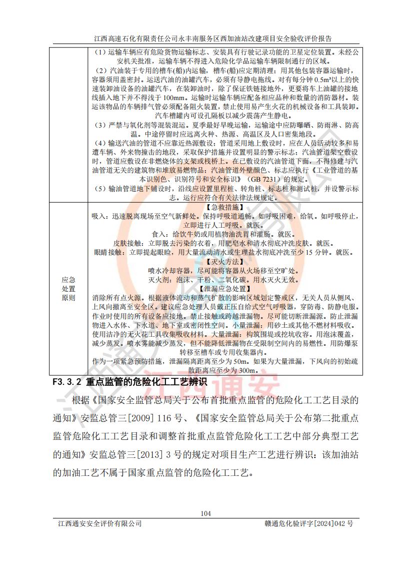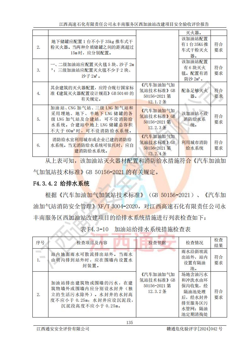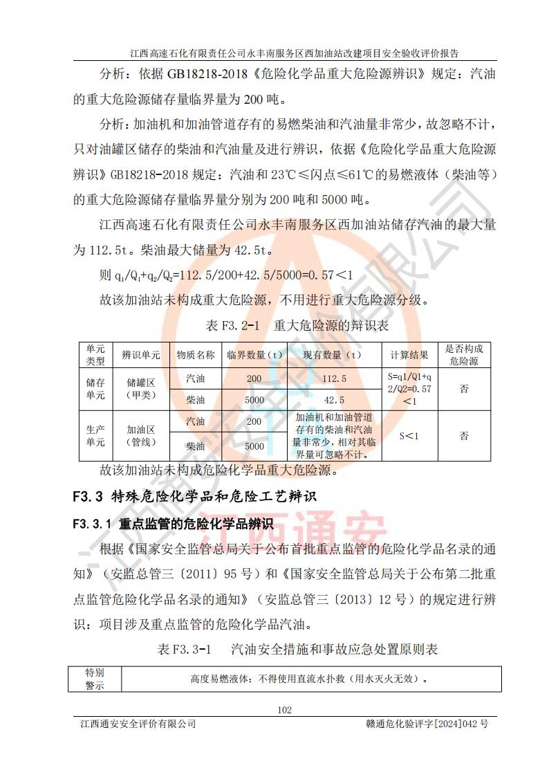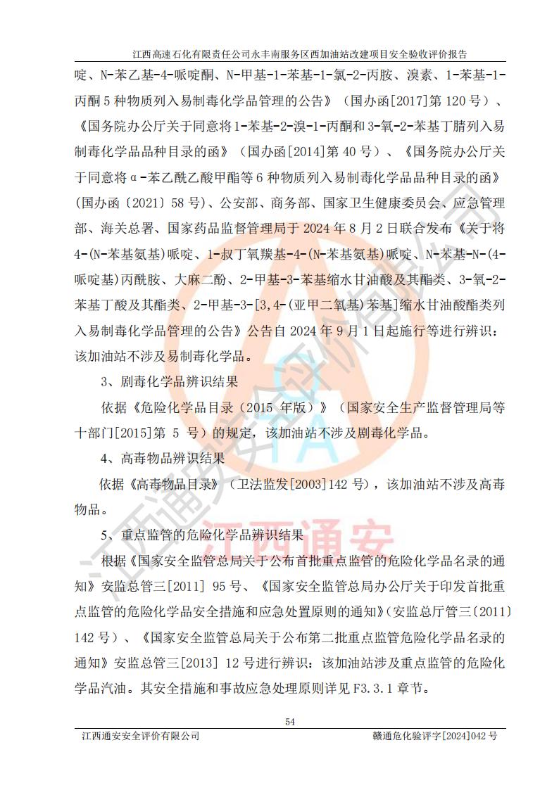 項(xiàng)目簡(jiǎn)介 | 江西高速石化有限責(zé)任公司永豐南服務(wù)區(qū)西加油站成立于2018年1月5日,類型:其他有限責(zé)任公司分公司;負(fù)責(zé)人:陳志斌;經(jīng)營(yíng)場(chǎng)所為江西省吉安市永豐縣昌寧高速永豐南服務(wù)區(qū)西加油站。該公司營(yíng)業(yè)執(zhí)照經(jīng)營(yíng)范圍:石油、石油化工(**期至2020年11月22日)、化纖及其他化工產(chǎn)品的銷售;光伏、充電樁、日用百貨便利店經(jīng)營(yíng):汽車清洗服務(wù);廣告位出租;房屋租賃;加油站租賃;食品的經(jīng)營(yíng)(**加油站取得相關(guān)前置許可后方可經(jīng)營(yíng),經(jīng)營(yíng)項(xiàng)目及**期以許可證為準(zhǔn))、計(jì)生用品經(jīng)營(yíng);零售卷煙、雪茄煙;委托代理收取水電費(fèi);銷售潤(rùn)滑油、瀝青、文化用品、體育用品及器材;零售五金、家用電器及電子產(chǎn)品、加油充值卡;與經(jīng)營(yíng)業(yè)務(wù)有關(guān)的咨詢服務(wù);汽車裝飾。(依法須經(jīng)批準(zhǔn)的項(xiàng)目,經(jīng)相關(guān)部門(mén)批準(zhǔn)后方可開(kāi)展經(jīng)營(yíng)活動(dòng))。 該加油站于2023年12月4日經(jīng)吉安市商務(wù)局核準(zhǔn)變更換發(fā)成品油零售經(jīng)營(yíng)批準(zhǔn)證書(shū),證書(shū)編號(hào):油零售證書(shū)第吉0304號(hào)。**期由2023年12月4日至2028年12月3日。于2023年11月15日由吉安市應(yīng)急管理局變更發(fā)放危險(xiǎn)化學(xué)品經(jīng)營(yíng)許可證,證書(shū)編號(hào):贛吉危化經(jīng)字【2023】360800000086。**期由2023年11月22日至2026年11月21日。 為提升優(yōu)化加油站的整體布局,更好滿足運(yùn)營(yíng)服務(wù)的需求,同時(shí)為了迎合昌寧高速日益增長(zhǎng)的**數(shù)量,江西高速石化有限責(zé)任公司永豐南服務(wù)區(qū)西加油站決定在原址基礎(chǔ)上進(jìn)行改建,并于2023年12月15日獲得永豐縣發(fā)展和改革委員會(huì)蓋章的《江西省工業(yè)企業(yè)技術(shù)改造項(xiàng)目備案通知書(shū)》,同意該站在原址上改建。 江西高速石化有限責(zé)任公司永豐南服務(wù)區(qū)西加油站改建項(xiàng)目位于江西省吉安市永豐縣石馬鎮(zhèn)昌寧高速永豐南服務(wù)區(qū)西側(cè)。 該加油站改建前設(shè)有4個(gè)SF雙層埋地儲(chǔ)罐,分別為:1臺(tái)50m392#汽油雙層埋地儲(chǔ)罐,1臺(tái)50m395#汽油雙層埋地儲(chǔ)罐;2臺(tái)50m30#柴油雙層埋地儲(chǔ)罐。柴油折半后總?cè)莘e為 150 m3,屬二級(jí)加油站。設(shè)有2個(gè)4槍雙油品潛油泵加油機(jī),1個(gè)6槍3油品潛油泵加油機(jī),分別為:1臺(tái)95#汽油/92#汽油/92#汽油/95#汽油4槍加油機(jī),1臺(tái)0#柴油/92#汽油/95#汽油/0#柴油/92#汽油/95#汽油6槍加油機(jī),1臺(tái)0#柴油/92#汽油//0#柴油/92#汽油4槍加油機(jī)。 改建后情況如下:在原有罐區(qū)位置上將1臺(tái)50m30#柴油雙層埋地儲(chǔ)罐改造為1臺(tái)50m392#汽油雙層埋地儲(chǔ)罐。儲(chǔ)罐更換后僅對(duì)油品變更,油罐保持原有,更換后設(shè)置4臺(tái)SF雙層埋地儲(chǔ)罐,其中包括:2臺(tái)50m392#汽油雙層埋地儲(chǔ)罐;1臺(tái)50m395#汽油雙層埋地儲(chǔ)罐;1臺(tái)50m30#柴油雙層埋地儲(chǔ)罐;改建后*大總儲(chǔ)量為200m3,柴油折半后總?cè)莘e為175m3,屬**加油站,加油機(jī)更換后將原來(lái)2臺(tái)4槍加油機(jī)**變更為6槍加油機(jī),另一臺(tái)6槍加油機(jī)僅對(duì)油品槍號(hào)變更,加油機(jī)保持原有,設(shè)有2臺(tái)92#汽油/92#汽油/95#汽油/92#汽油/92#汽油/95#汽油6槍2油品加油機(jī),1臺(tái)0#柴油/95#汽油/92#汽油/0#柴油/95#汽油/92#汽油6槍3油品加油機(jī),在G-101加油機(jī)旁3.4m處設(shè)一臺(tái)車用尿素加注機(jī)(防爆,按柴油加油機(jī)確認(rèn)),型號(hào)為:JZB-1808,加油站內(nèi)其他設(shè)施利舊。 項(xiàng)目生產(chǎn)過(guò)程中涉及的危險(xiǎn)化學(xué)品有:汽油、柴油等。 項(xiàng)目各生產(chǎn)和儲(chǔ)存單元均未構(gòu)成危險(xiǎn)化學(xué)品重大危險(xiǎn)源。 | |||