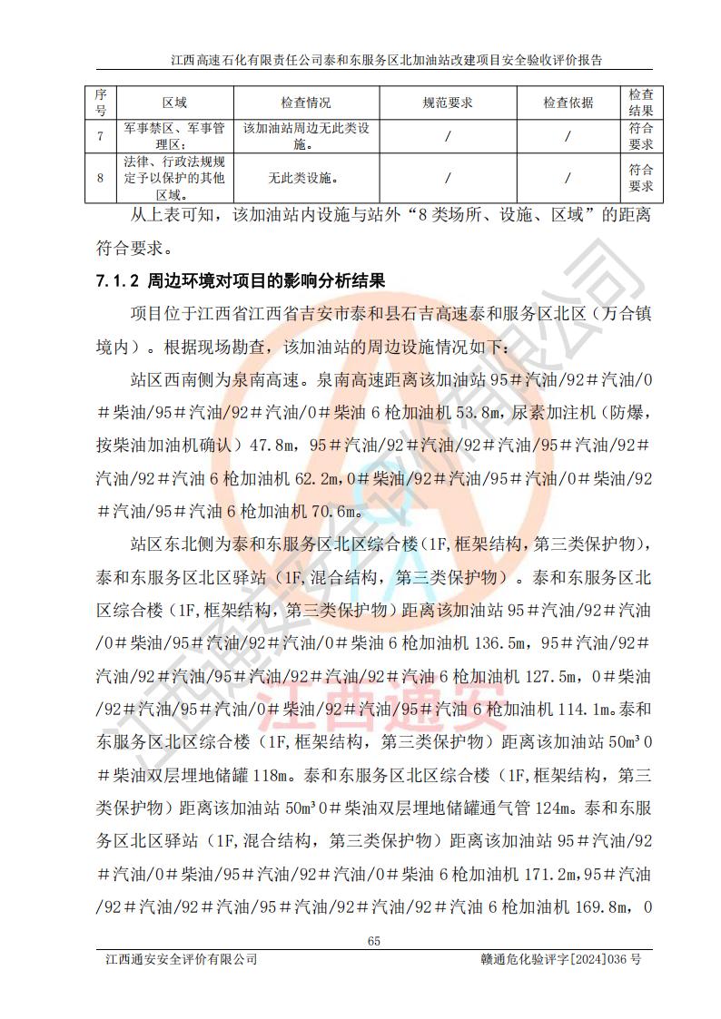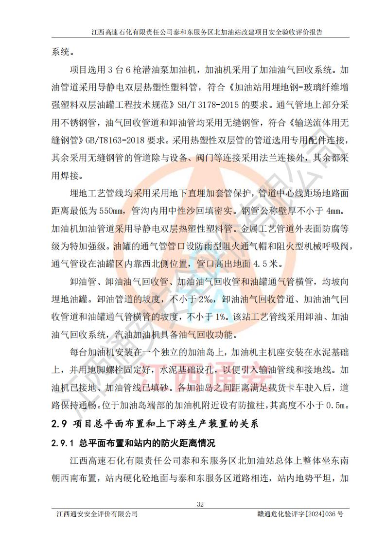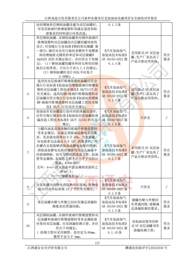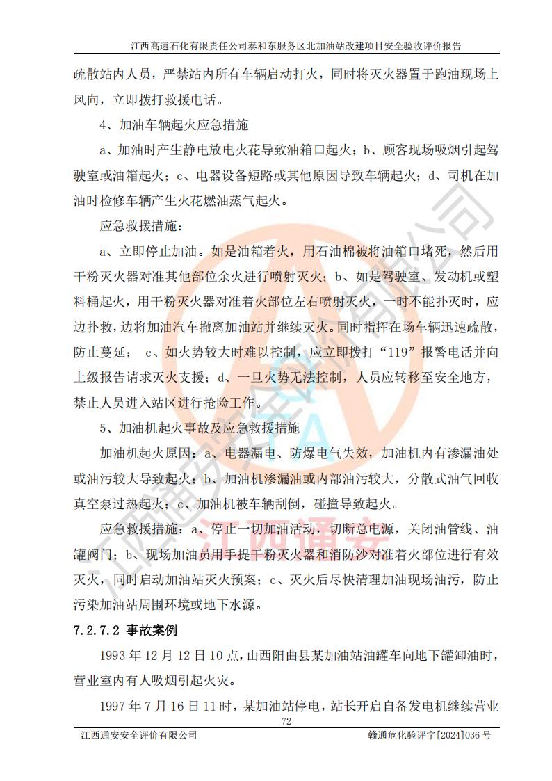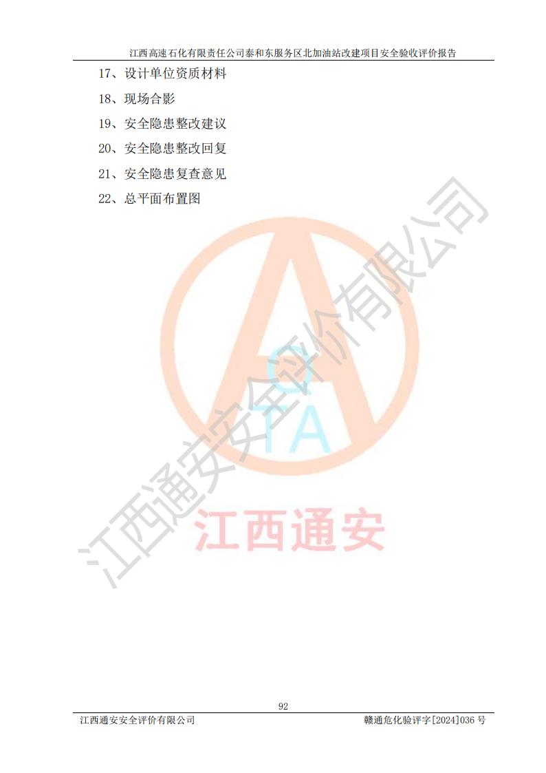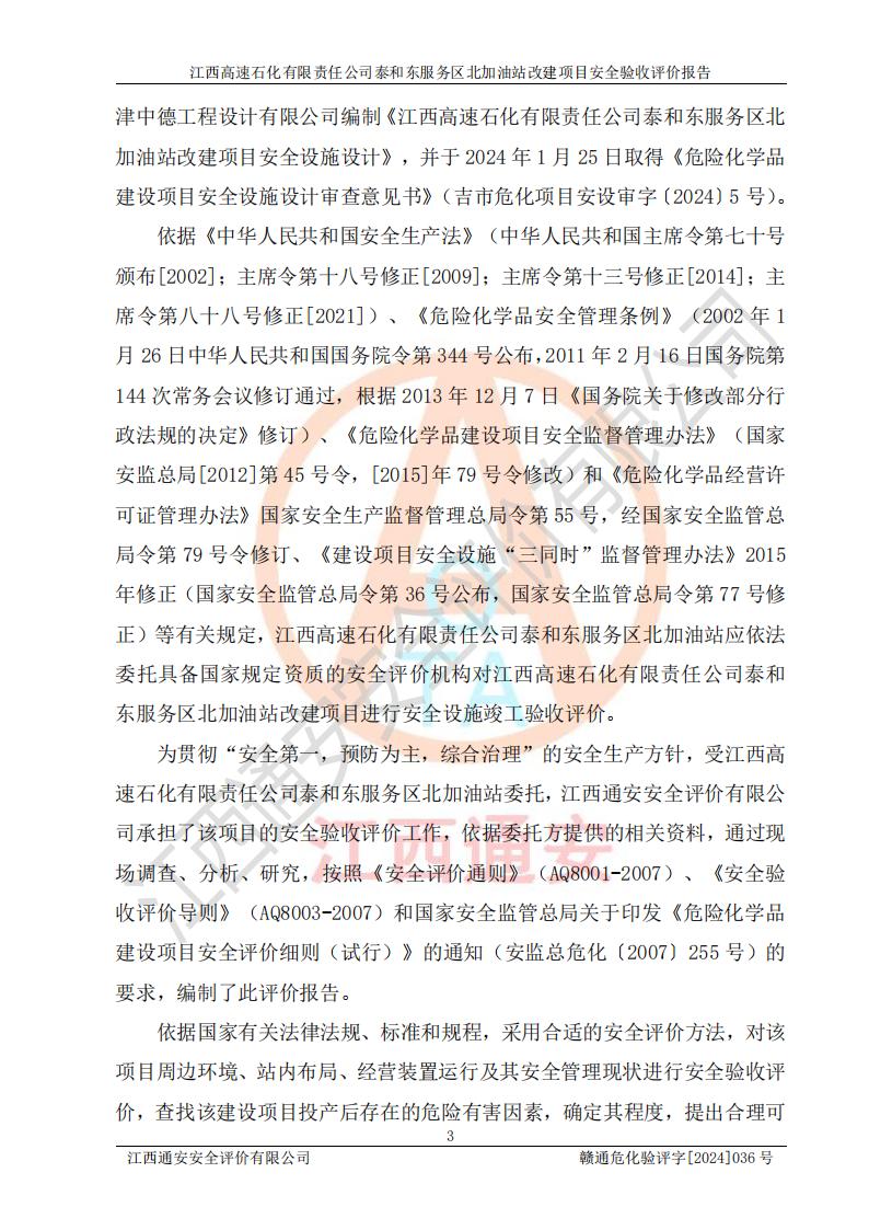項目名稱 | 江西高速石化有限責任公司泰和東服務區(qū)北加油站改建項目安全驗收評價報告 | ||||