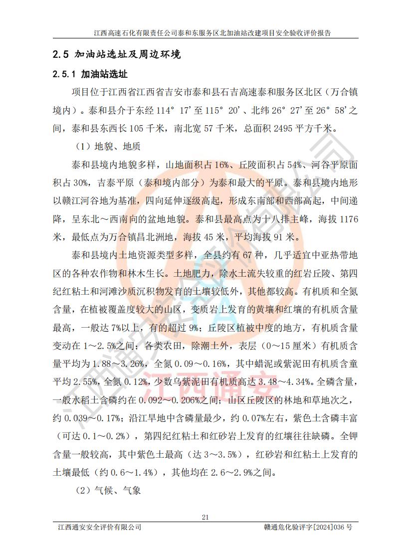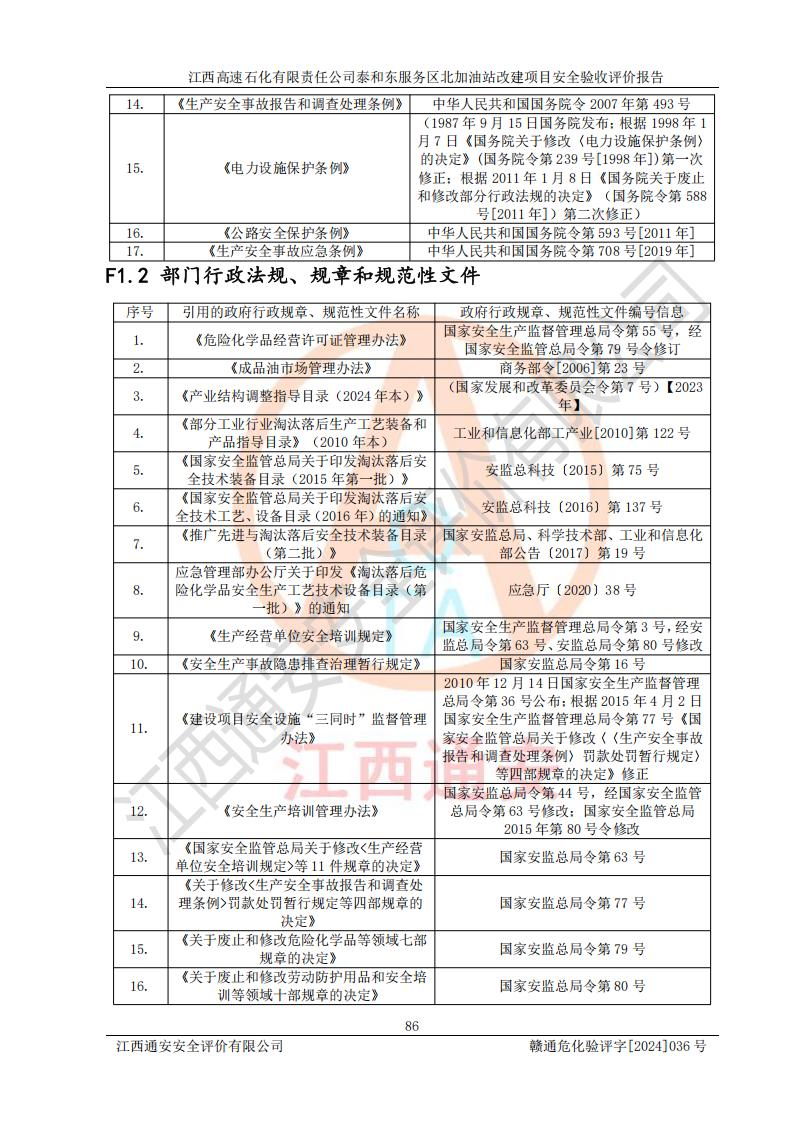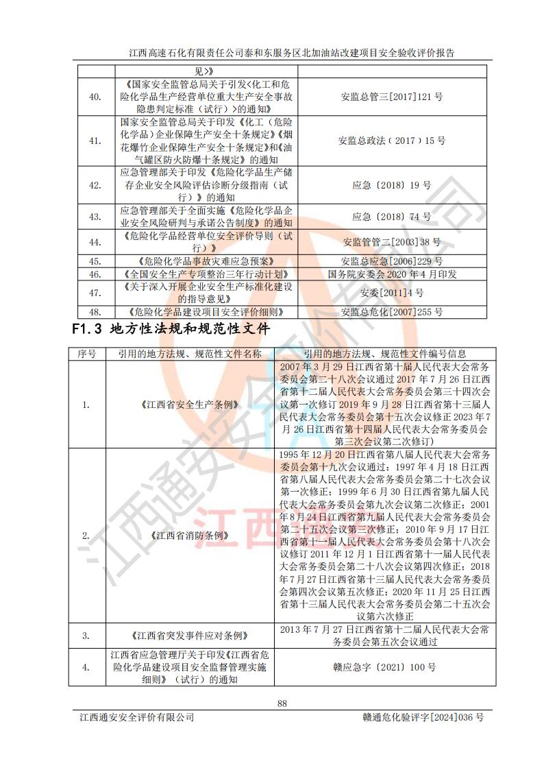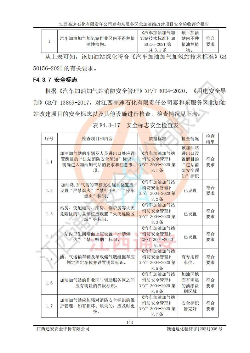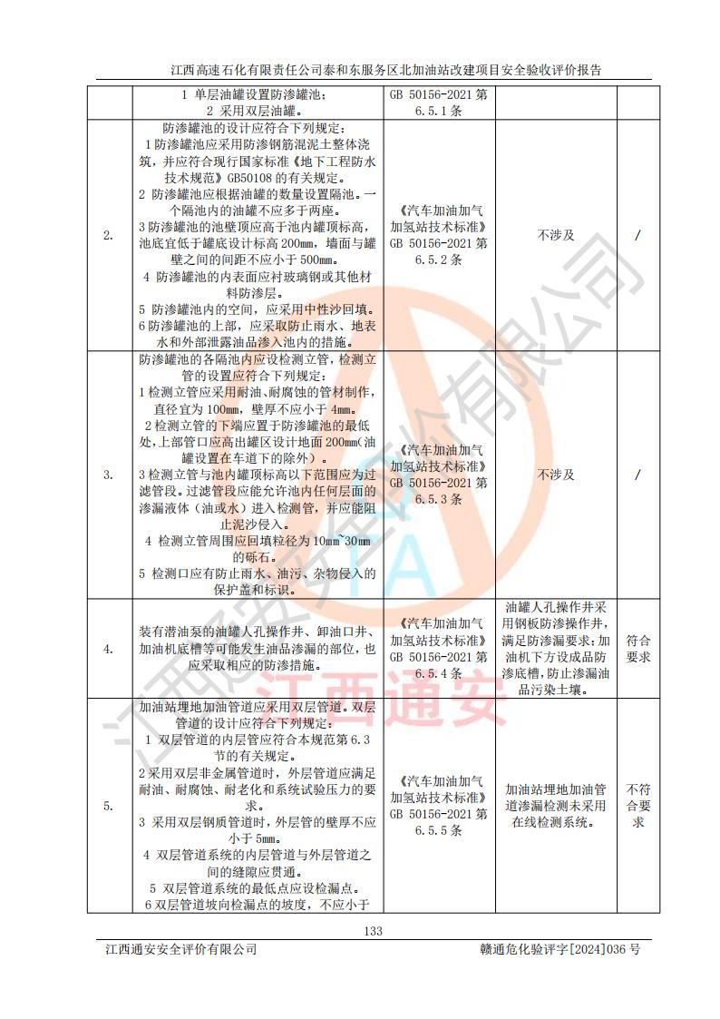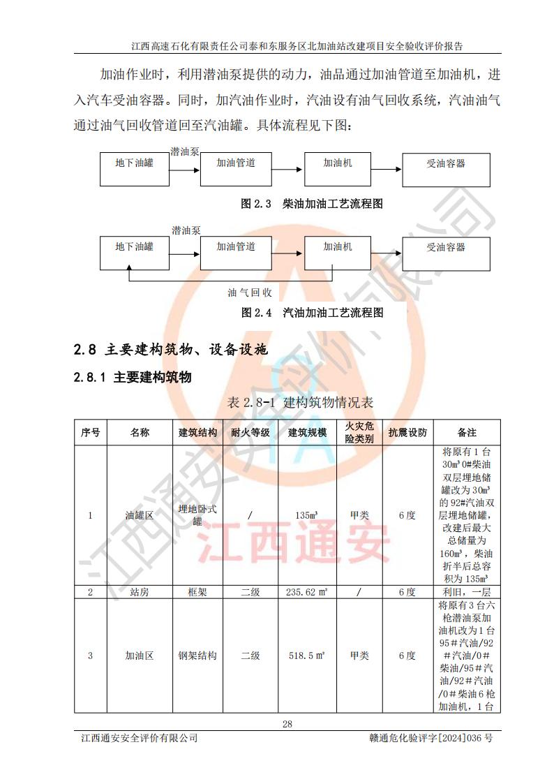 項目名稱 | 江西高速石化有限責任公司泰和東服務區(qū)北加油站改建項目安全驗收評價報告 | ||||