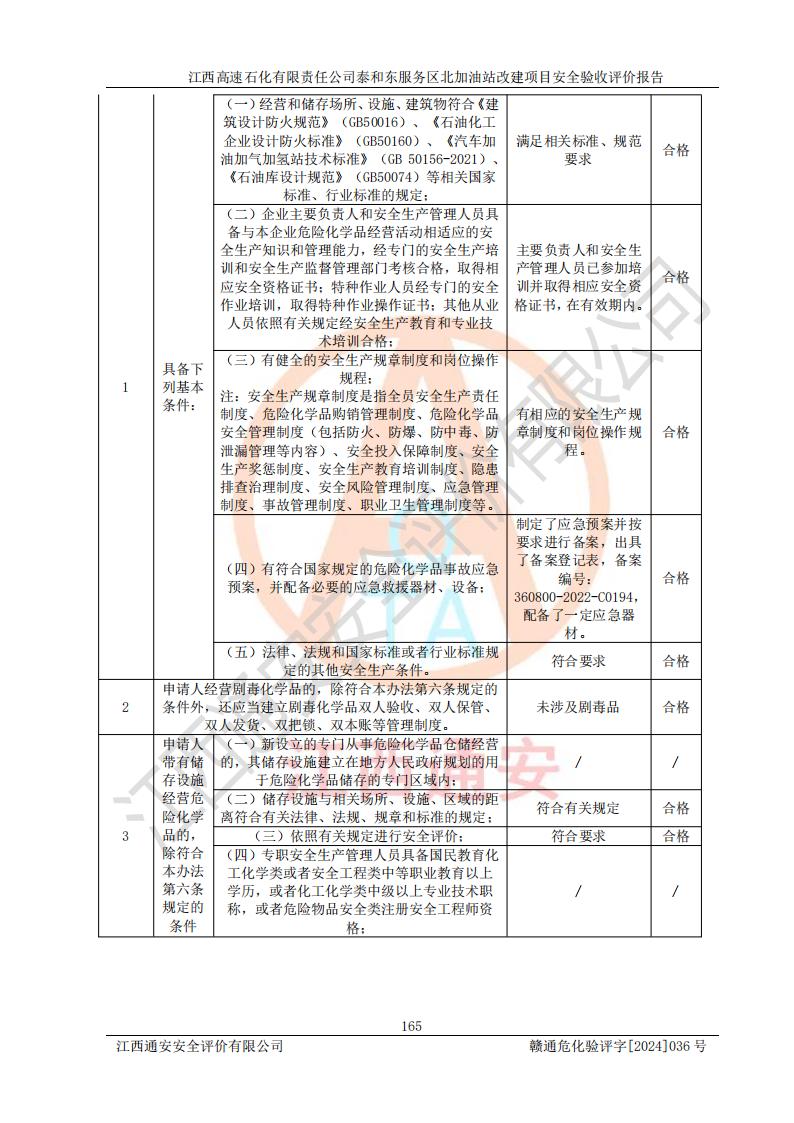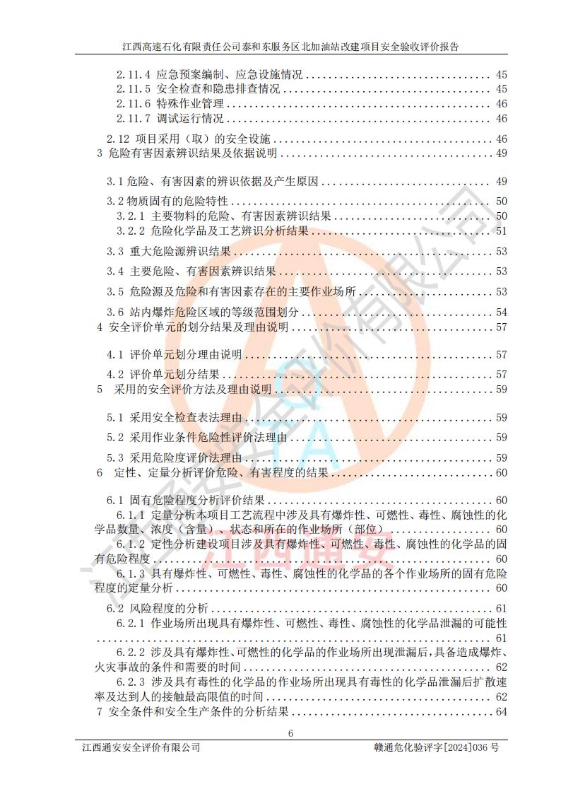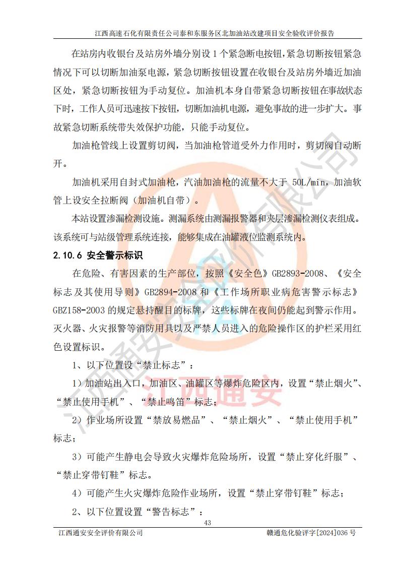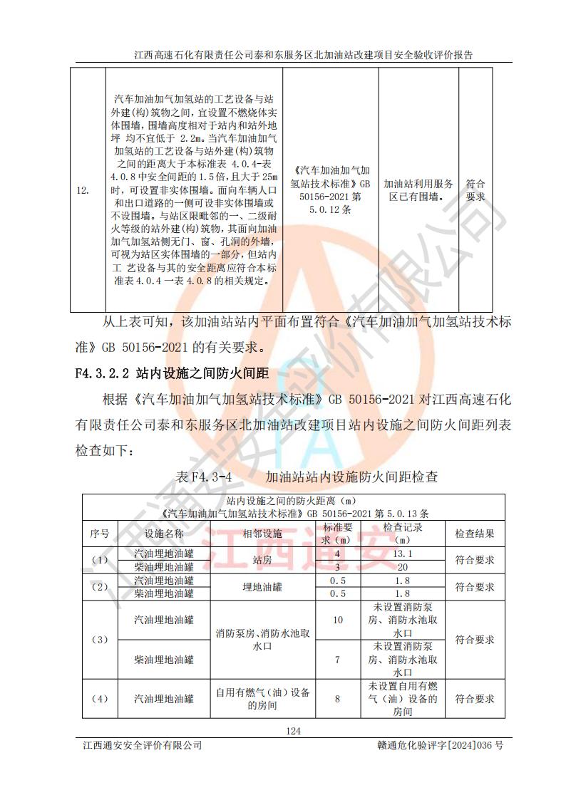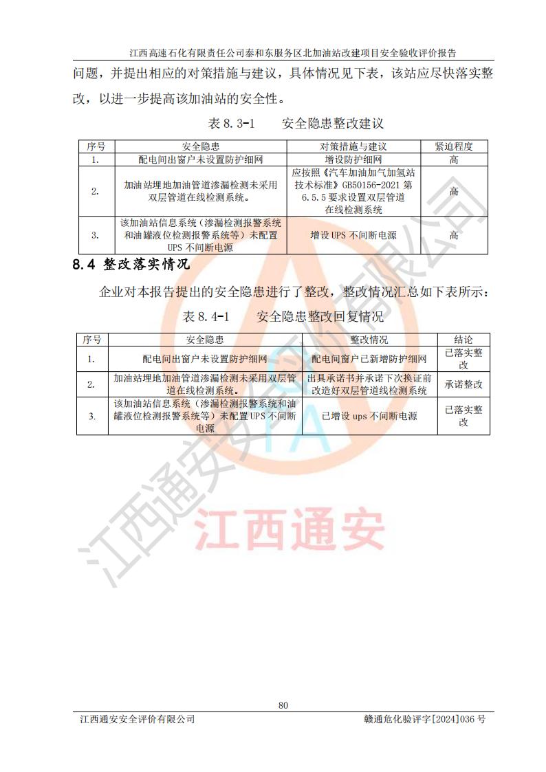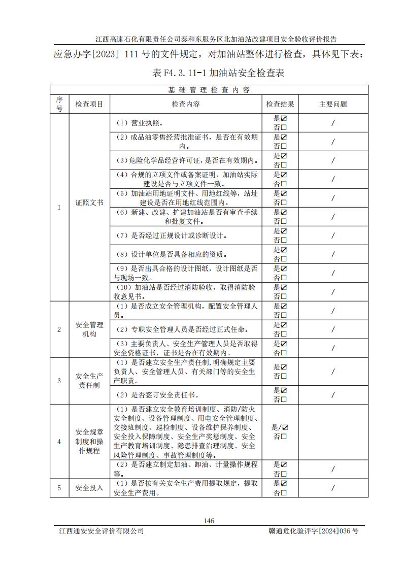 項目名稱 | 江西高速石化有限責任公司泰和東服務區(qū)北加油站改建項目安全驗收評價報告 | ||||