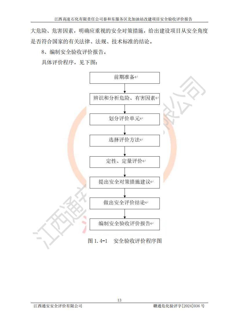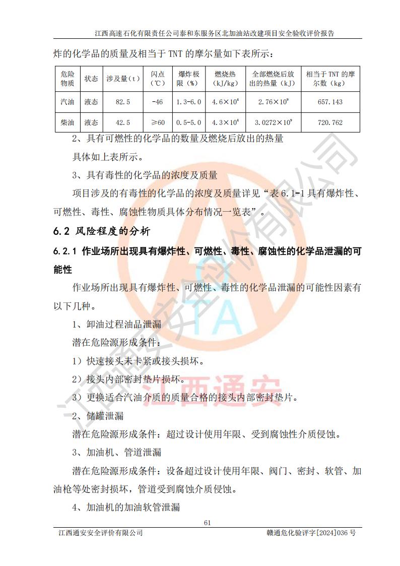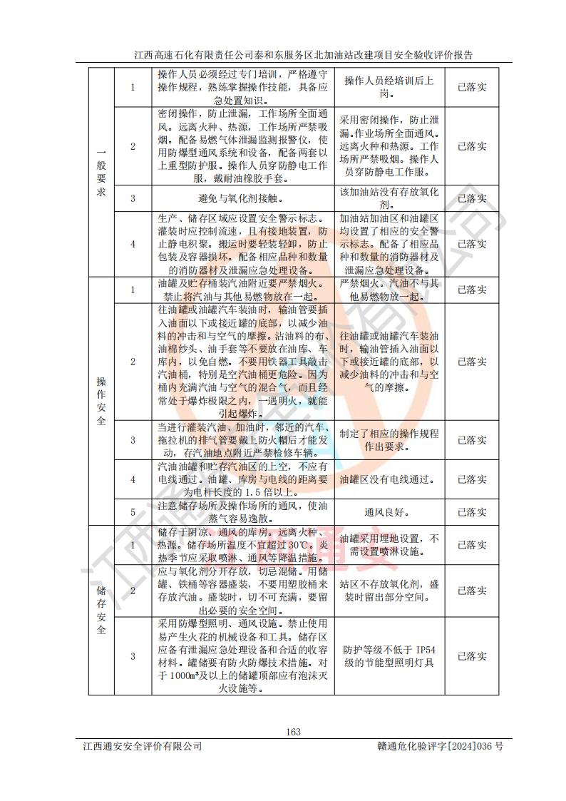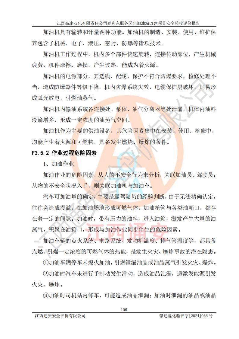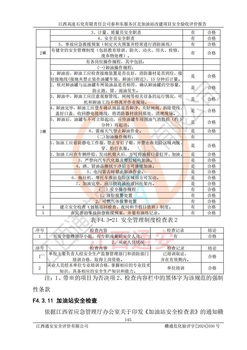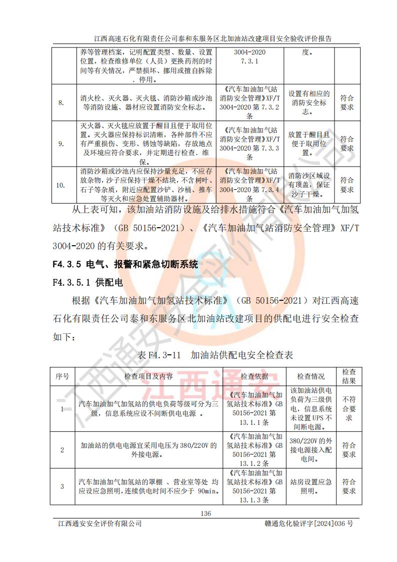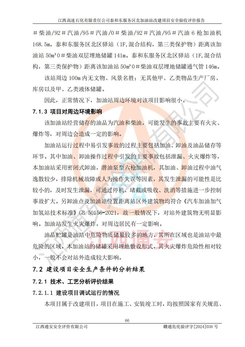項目名稱 | 江西高速石化有限責任公司泰和東服務區(qū)北加油站改建項目安全驗收評價報告 | ||||