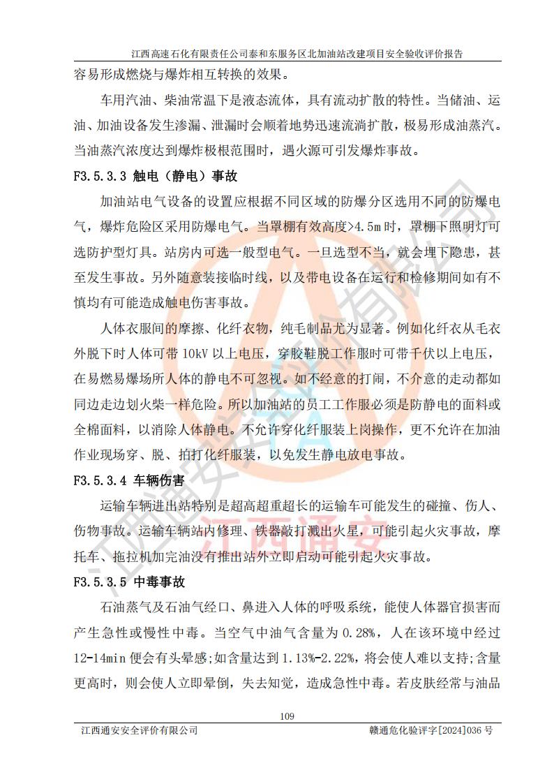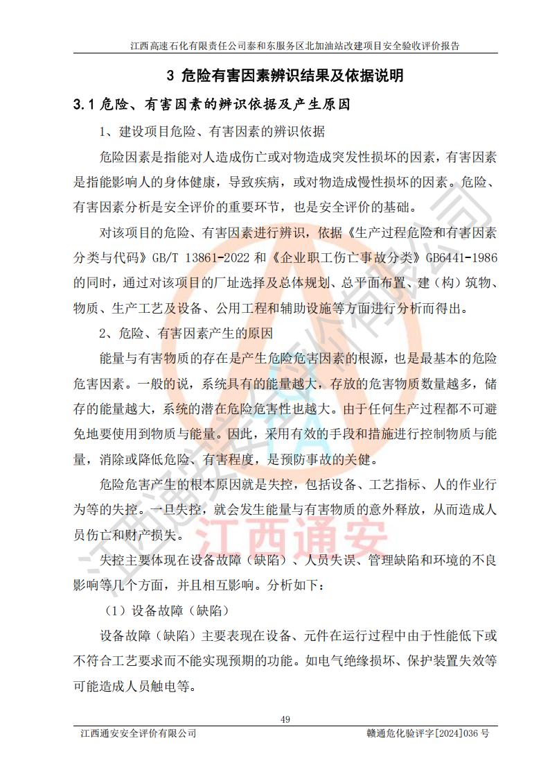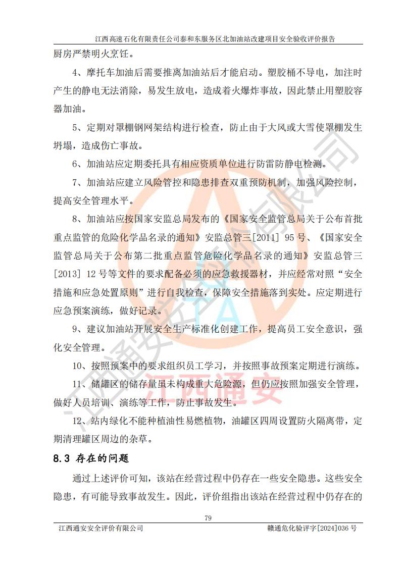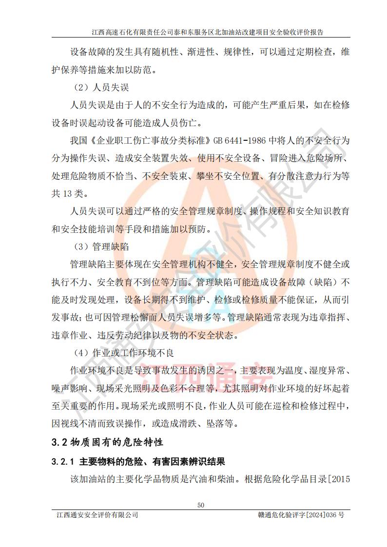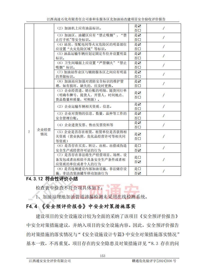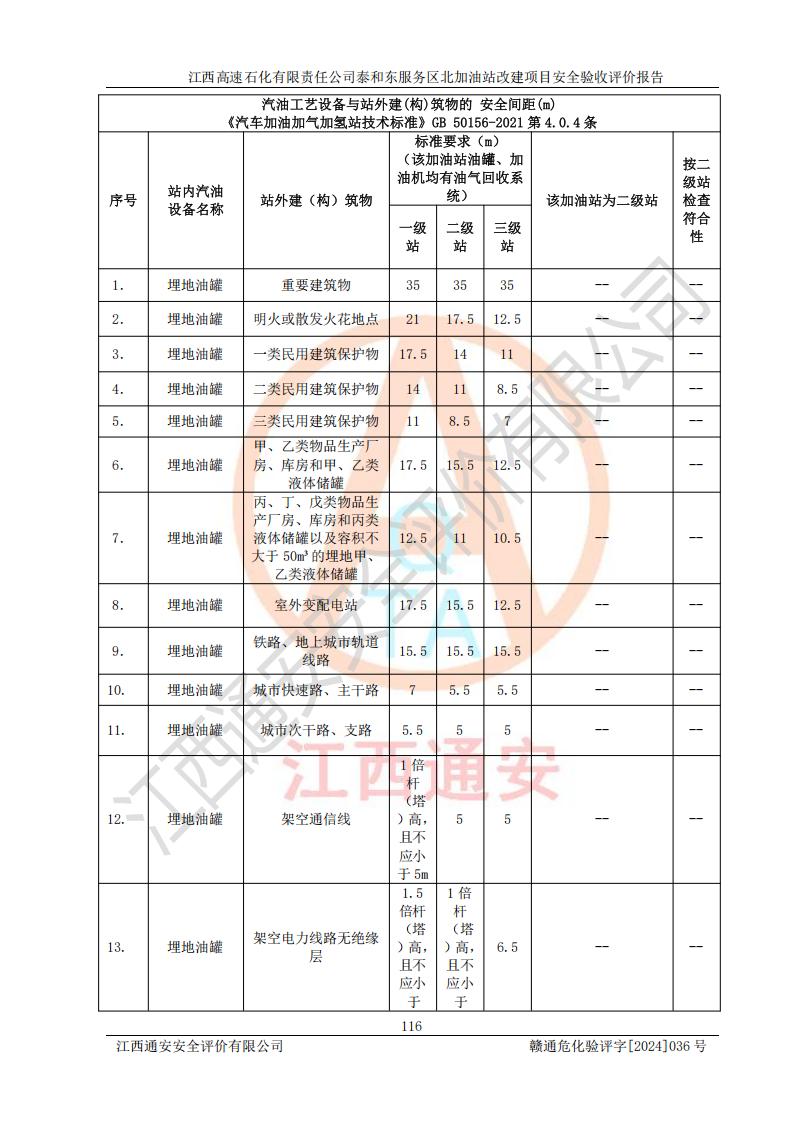 項目名稱 | 江西高速石化有限責任公司泰和東服務區(qū)北加油站改建項目安全驗收評價報告 | ||||