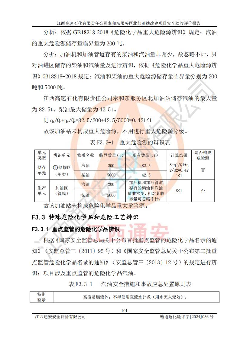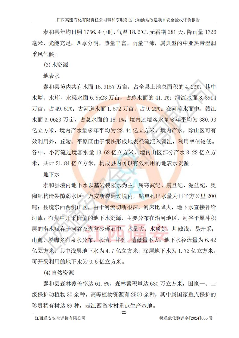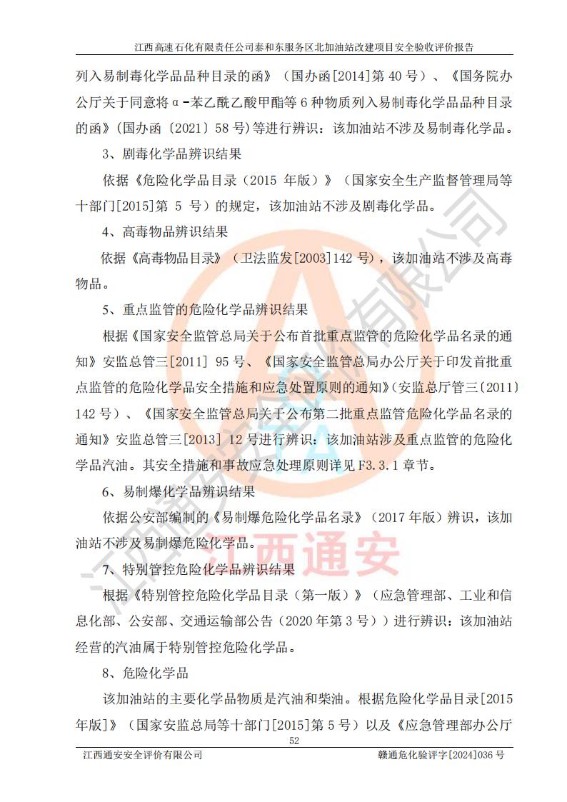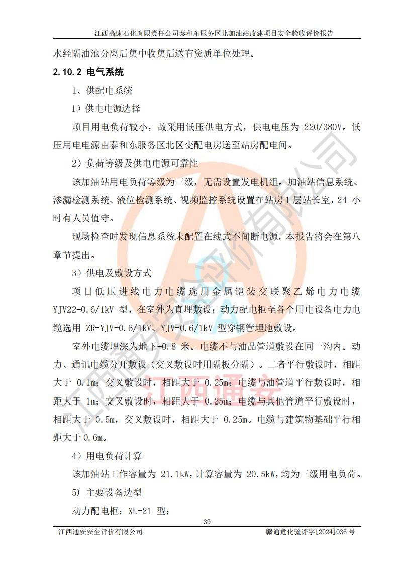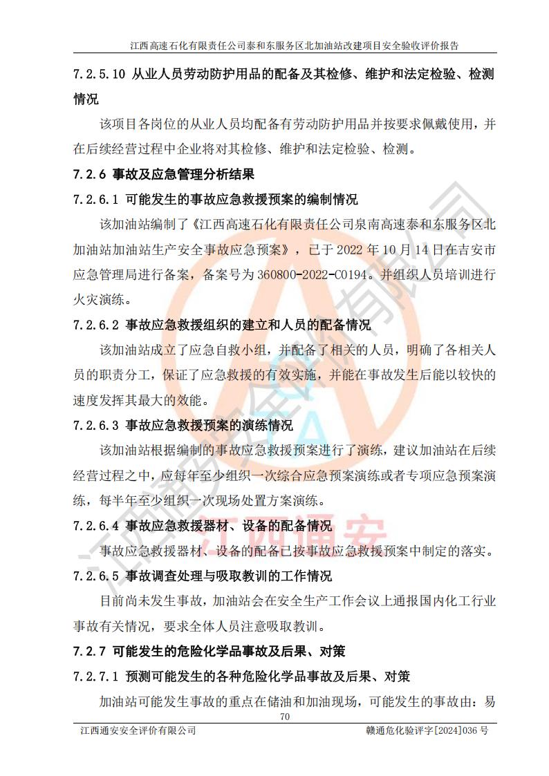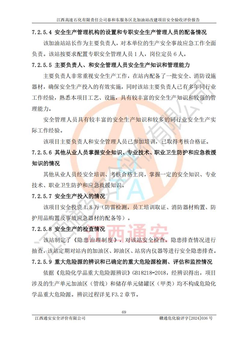 項目名稱 | 江西高速石化有限責任公司泰和東服務區(qū)北加油站改建項目安全驗收評價報告 | ||||