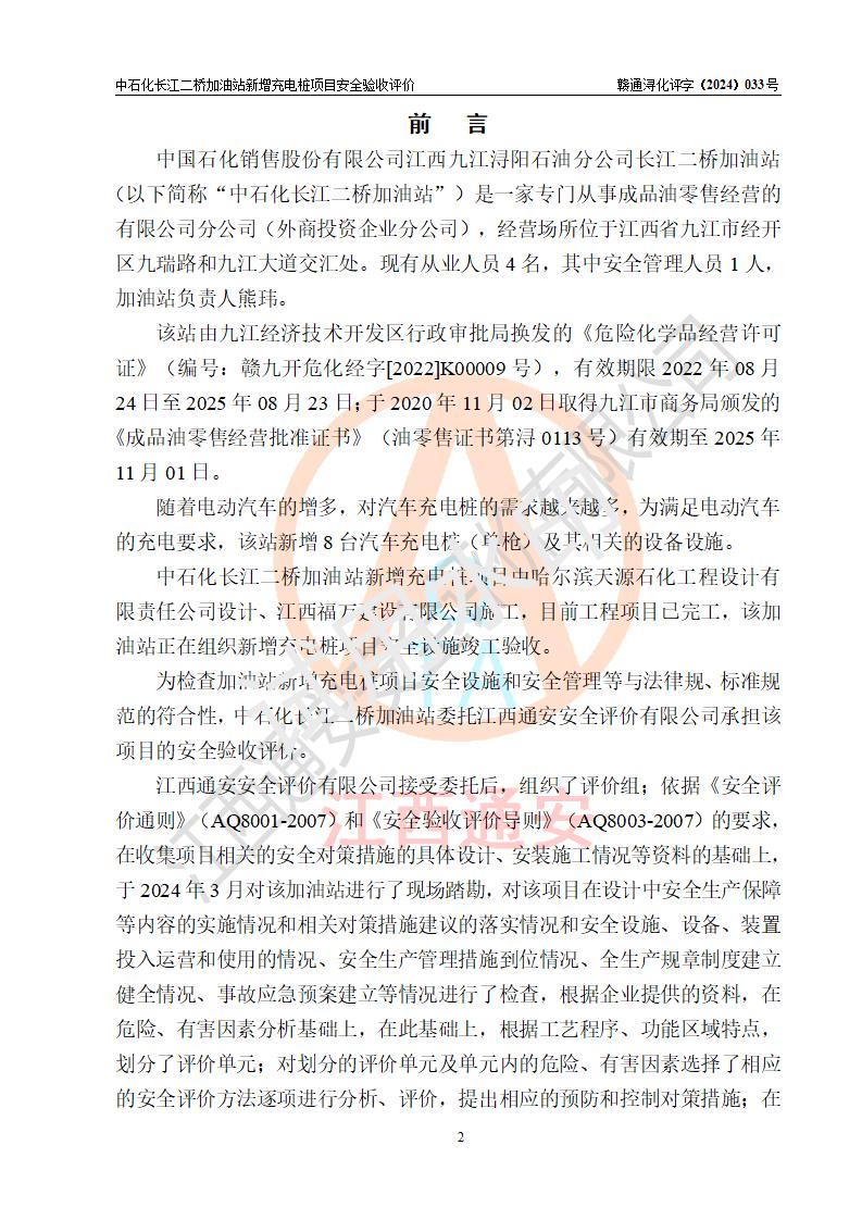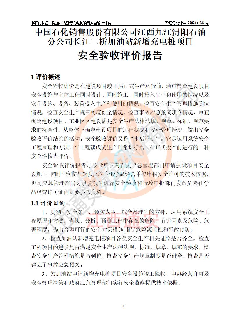 評價(jià)報(bào)告名稱 | 中國石化銷售股份有限公司江西九江潯陽石油分公司長江二橋加油站新增充電樁項(xiàng)目安全驗(yàn)收評價(jià)報(bào)告 | |||