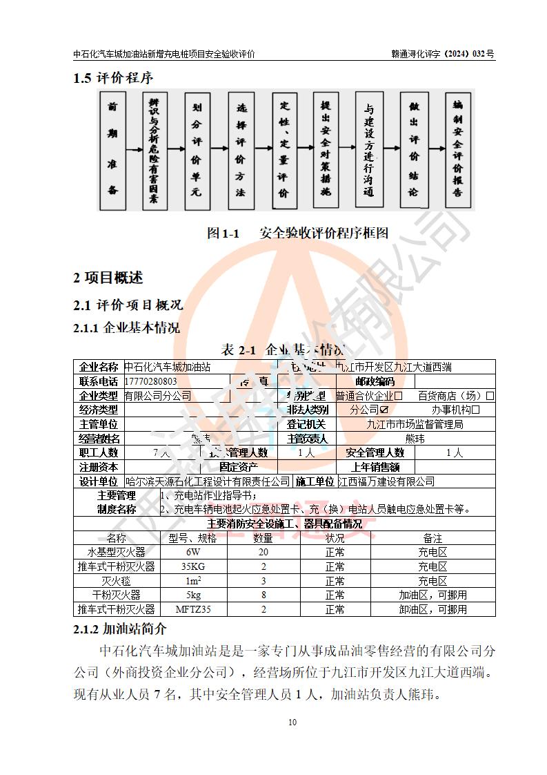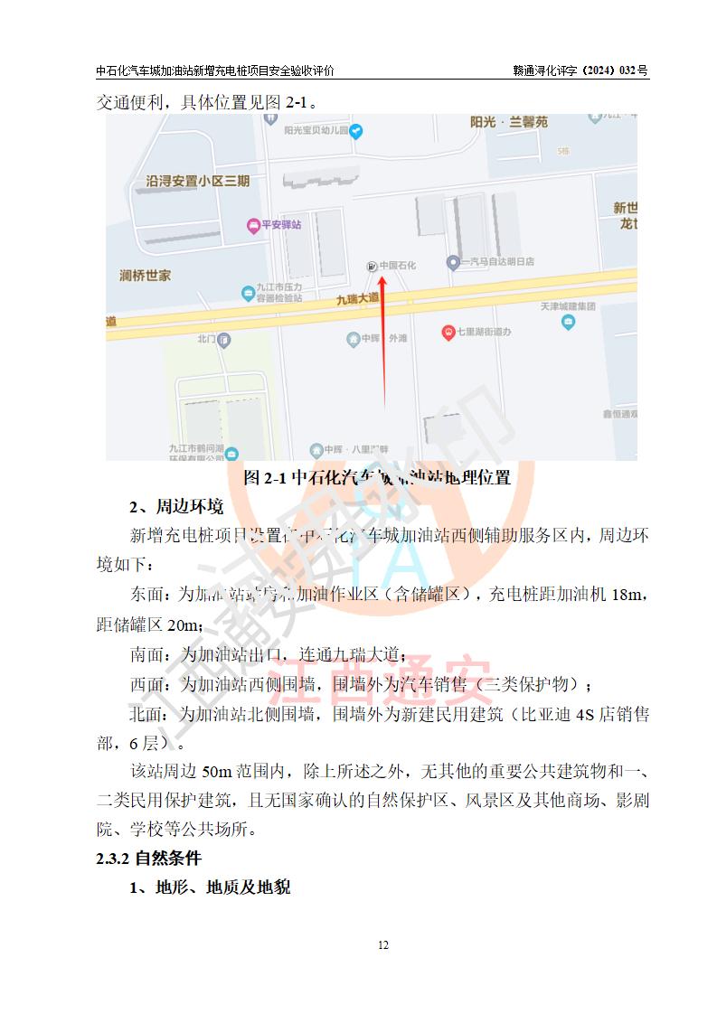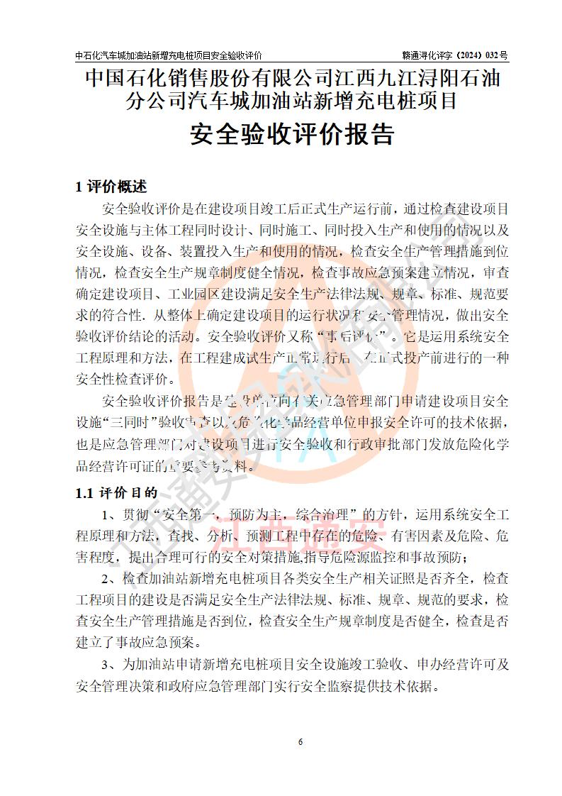 評價報告名稱 | 中國石化銷售股份有限公司江西九江潯陽石油分公司汽車城加油站新增充電樁項目安全驗收評價報告 | |||