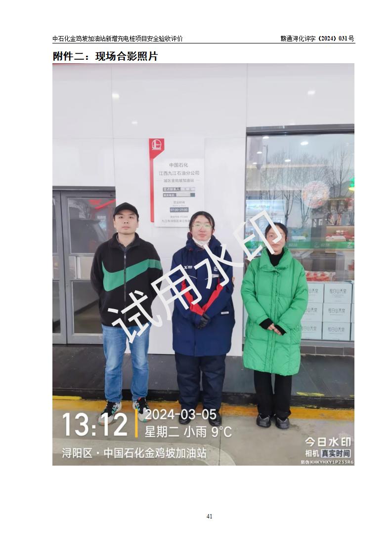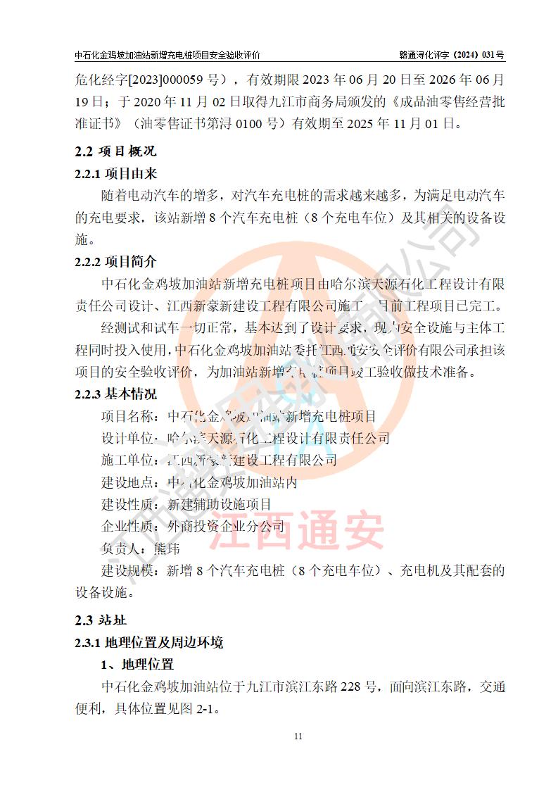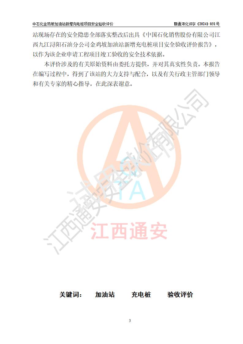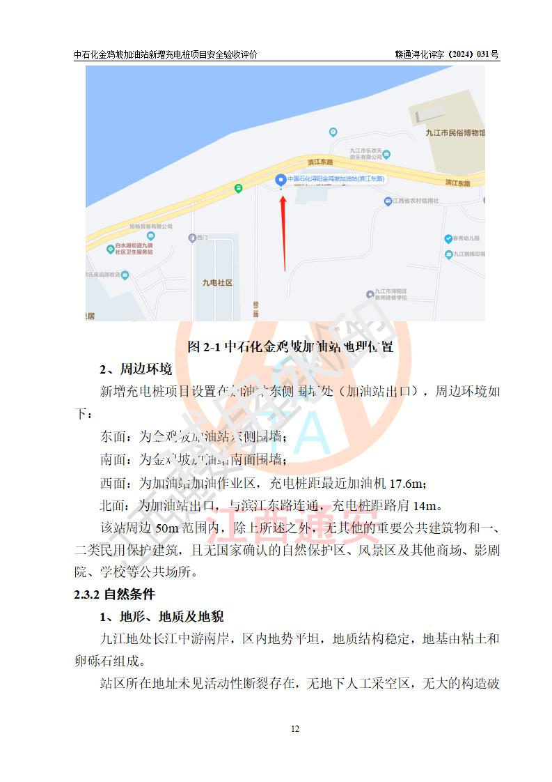 評價報告名稱 | 中國石化銷售股份有限公司江西九江潯陽石油分公司金雞坡加油站新增充電樁項目安全驗收評價報告 | |||