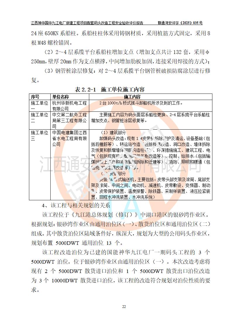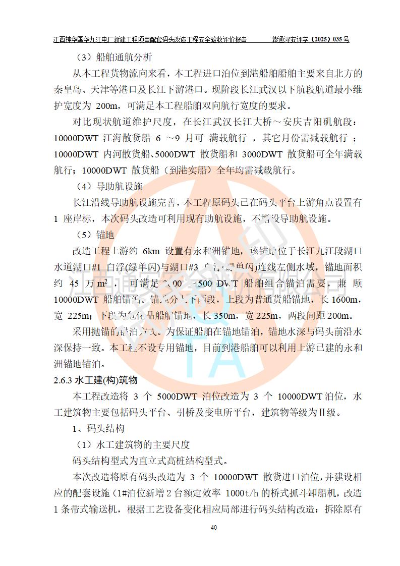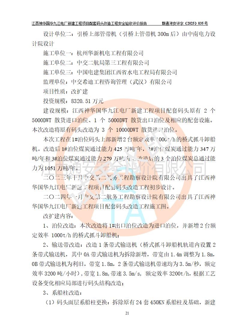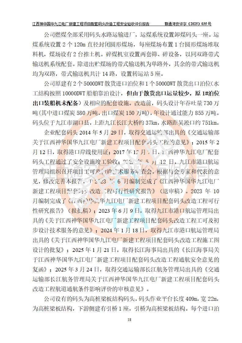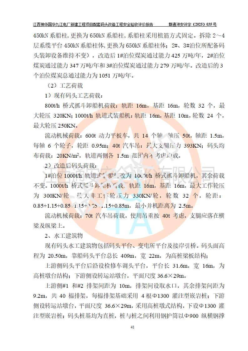 項目名稱:江西神華國華九江電廠新建工程項目配套碼頭改造工程 項目地點:位于長江下游東北水道右岸,九江長江大橋下游約37**,岸線批復(fù)總長度為409米 建設(shè)單位:國能神華九江發(fā)電有限責(zé)任公司 勘察設(shè)計單位:中交第二航務(wù)工程勘察設(shè)計院有限公司 設(shè)計單位一:中交第二航務(wù)工程勘察設(shè)計院有限公司(水工建筑物設(shè)計分界以大堤為界,大堤以外由二航院設(shè)計) ;工藝專業(yè)設(shè)計分界點以碼頭平臺上的 0#轉(zhuǎn)運站為分界點,0#轉(zhuǎn)運站內(nèi)部工藝設(shè)備由二航院設(shè)計 設(shè)計單位二:引橋上部管帶機(引橋上管帶機300m后)由中南電力設(shè)計院設(shè)計 施工單位一:杭州華新機電工程有限公司 施工單位二:中交二航局第三工程有限公司 施工單位三:中國電建集團(tuán)江西省水電工程局有限公司 監(jiān)理單位:中交希迪工程咨詢管理(武漢)有限公司 項目性質(zhì):改擴建 投資規(guī)模:8320.51萬元 建設(shè)規(guī)模:江西神華國華九江電廠新建工程項目配套碼頭原有 2 個5000DWT 散貨**泊位、1 個 5000DWT 散貨出口泊位及相應(yīng)的配套設(shè)施。本次改造將原有碼頭改造為 3 個 10000DWT 散貨**泊位。改造后的3個泊位煤炭總通過能力為1051萬噸/年。 |