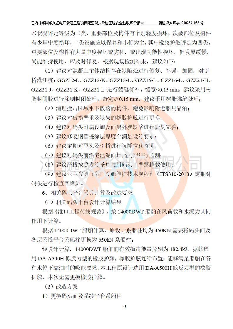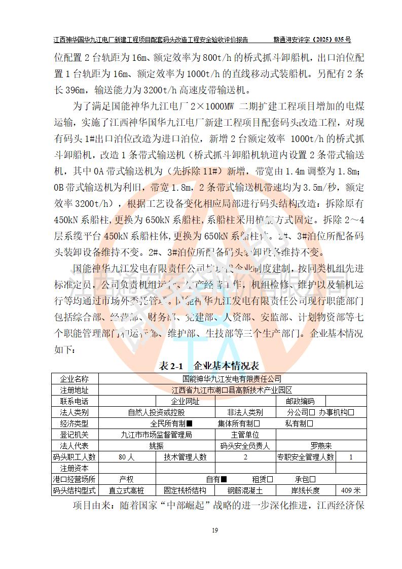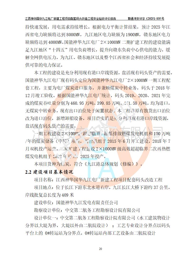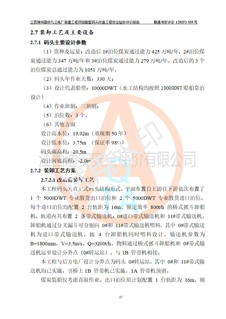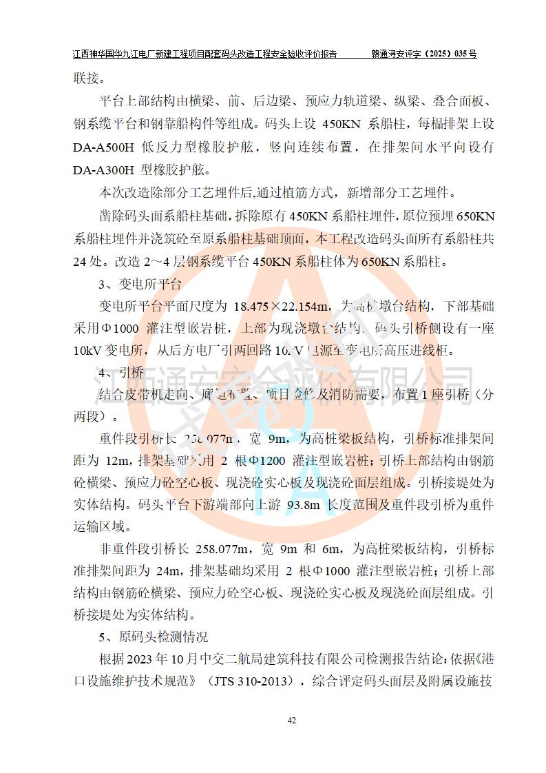 項目名稱:江西神華國華九江電廠新建工程項目配套碼頭改造工程 項目地點:位于長江下游東北水道右岸,九江長江大橋下游約37**,岸線批復(fù)總長度為409米 建設(shè)單位:國能神華九江發(fā)電有限責(zé)任公司 勘察設(shè)計單位:中交第二航務(wù)工程勘察設(shè)計院有限公司 設(shè)計單位一:中交第二航務(wù)工程勘察設(shè)計院有限公司(水工建筑物設(shè)計分界以大堤為界,大堤以外由二航院設(shè)計) ;工藝專業(yè)設(shè)計分界點以碼頭平臺上的 0#轉(zhuǎn)運站為分界點,0#轉(zhuǎn)運站內(nèi)部工藝設(shè)備由二航院設(shè)計 設(shè)計單位二:引橋上部管帶機(引橋上管帶機300m后)由中南電力設(shè)計院設(shè)計 施工單位一:杭州華新機電工程有限公司 施工單位二:中交二航局第三工程有限公司 施工單位三:中國電建集團(tuán)江西省水電工程局有限公司 監(jiān)理單位:中交希迪工程咨詢管理(武漢)有限公司 項目性質(zhì):改擴建 投資規(guī)模:8320.51萬元 建設(shè)規(guī)模:江西神華國華九江電廠新建工程項目配套碼頭原有 2 個5000DWT 散貨**泊位、1 個 5000DWT 散貨出口泊位及相應(yīng)的配套設(shè)施。本次改造將原有碼頭改造為 3 個 10000DWT 散貨**泊位。改造后的3個泊位煤炭總通過能力為1051萬噸/年。 |