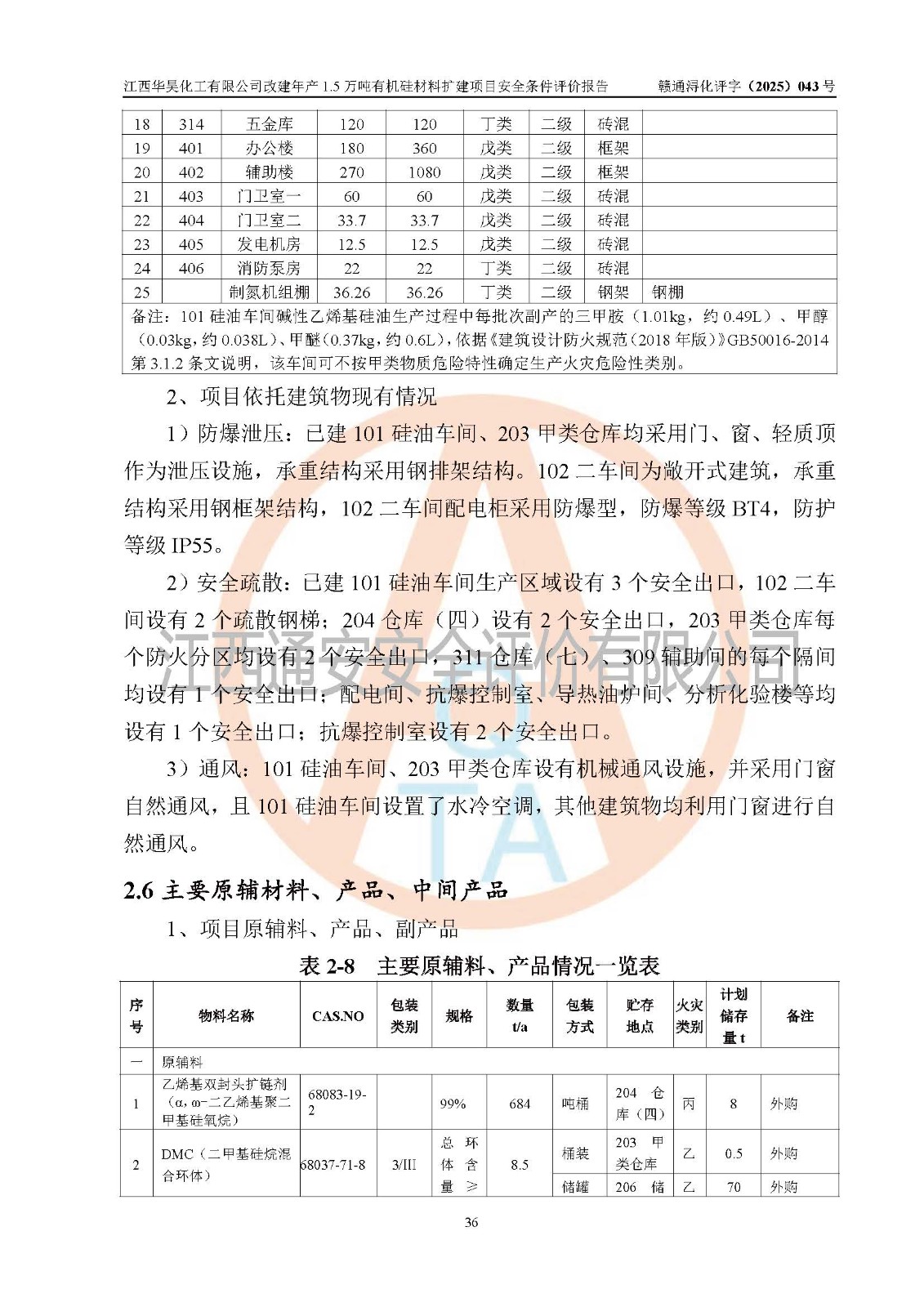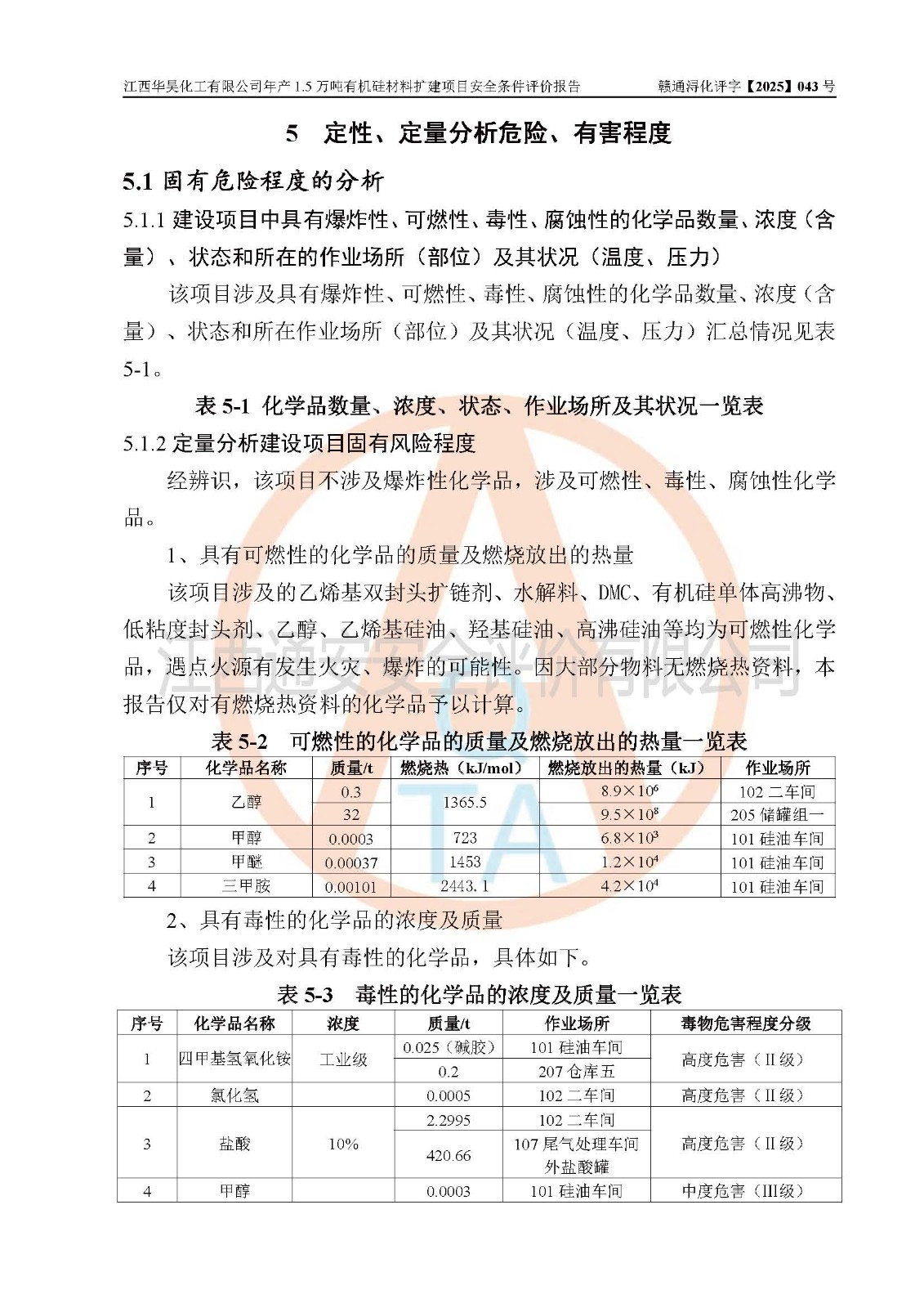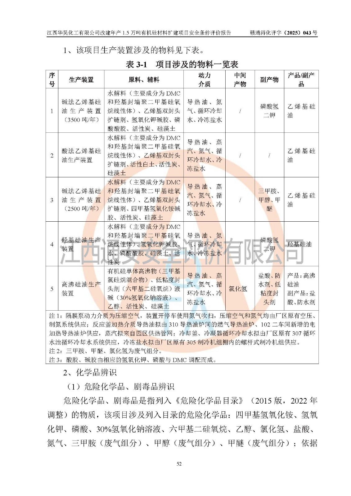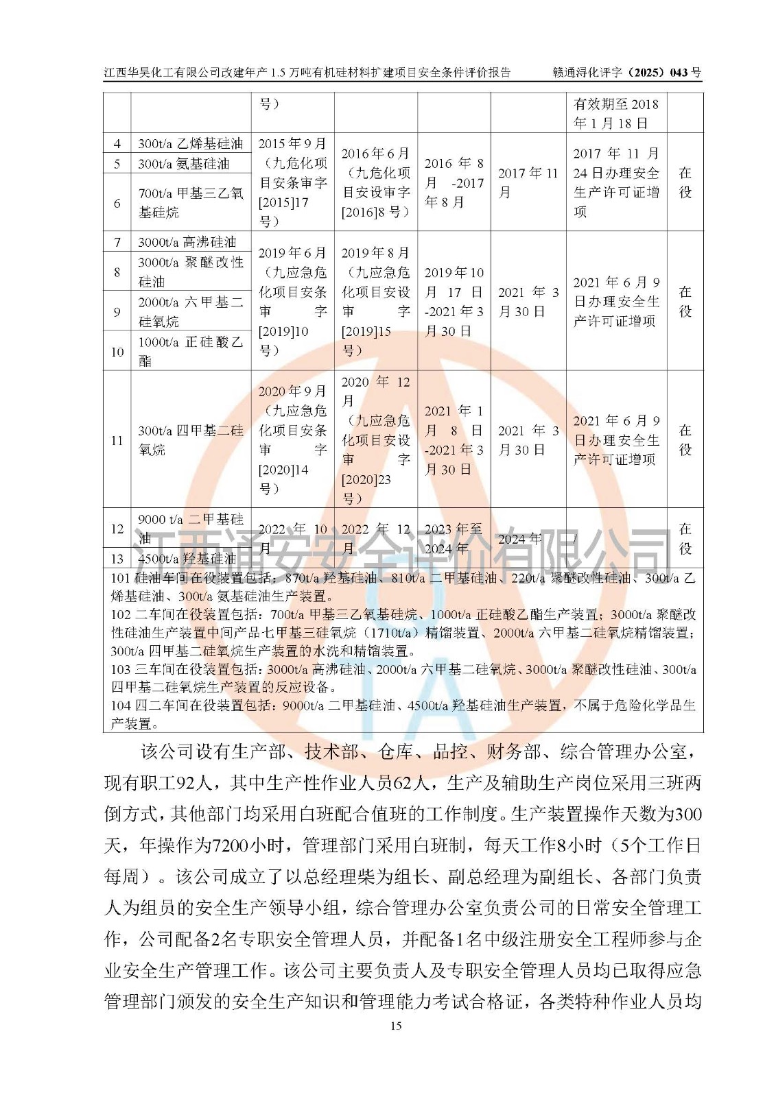 江西華昊化工有限公司是一家于2011年11月注冊(cè)成立的有限責(zé)任公司(自然人投資或控股),注冊(cè)地址位于永修縣云山經(jīng)濟(jì)開(kāi)發(fā)區(qū)星火工業(yè)園星云大道旁,法定**人柴利兵,注冊(cè)資本1542萬(wàn)元,經(jīng)營(yíng)范圍包括許可項(xiàng)目和一般項(xiàng)目,許可項(xiàng)目為危險(xiǎn)化學(xué)品生產(chǎn)、危險(xiǎn)化學(xué)品經(jīng)營(yíng)、貨物進(jìn)出口、第二類醫(yī)療器械生產(chǎn),一般項(xiàng)目為合成材料制造(不含危險(xiǎn)化學(xué)品)、合成材料銷售、第二類醫(yī)療器械銷售。 為滿足更大市場(chǎng)需求,同時(shí)解決企業(yè)原料及配套生產(chǎn)的需求,江西華昊化工有限公司擬投資5000萬(wàn)元將廠區(qū)101硅油車間、102二車間原有項(xiàng)目改建為年產(chǎn)1.5萬(wàn)噸有機(jī)硅材料擴(kuò)建項(xiàng)目(以下簡(jiǎn)稱“該項(xiàng)目”)。 該項(xiàng)目生產(chǎn)過(guò)程涉及的化學(xué)反應(yīng)包括聚合(常壓)、水解、中和,涉及蒸餾、壓濾、流體輸送、熱交換、產(chǎn)品包裝等化工單元操作過(guò)程。該項(xiàng)目涉及的危險(xiǎn)化學(xué)品包括四甲基氫氧化銨、氫氧化鉀、磷酸、30%氫氧化鈉溶液、六甲基二硅氧烷、乙醇、氯化氫、鹽酸、氮?dú)?/span>、DMC(二甲基環(huán)硅氧烷的混合物)、有機(jī)硅單體高沸物、**胺(廢氣組分)、甲醇(廢氣組分)、甲醚(廢氣組分),其中甲醇、甲醚屬于重點(diǎn)監(jiān)管的危險(xiǎn)化學(xué)品,鹽酸屬于第三類易制毒化學(xué)品,乙醇、甲醇、甲醚屬于特別管控危險(xiǎn)化學(xué)品,四甲基氫氧化銨、乙醇、**胺、甲醇、甲醚屬于第四類監(jiān)控化學(xué)品。該項(xiàng)目不涉及劇毒品、易制爆化學(xué)品、高毒物品,不涉及**、二、三類監(jiān)控化學(xué)品。 該項(xiàng)目不涉及重點(diǎn)監(jiān)管的典型危險(xiǎn)化工工藝,生產(chǎn)單元、儲(chǔ)存單元不構(gòu)成危險(xiǎn)化學(xué)品重大危險(xiǎn)源。 該項(xiàng)目副產(chǎn)品鹽酸、中間產(chǎn)品低粘度封頭劑(六甲基二硅氧烷)屬于危險(xiǎn)化學(xué)品,該項(xiàng)目屬于危險(xiǎn)化學(xué)品生產(chǎn)項(xiàng)目,依據(jù)《危險(xiǎn)化學(xué)品生產(chǎn)企業(yè)安全生產(chǎn)許可證實(shí)施辦法》(**安全生產(chǎn)監(jiān)督管理總局令第41號(hào),第79號(hào)、89號(hào)修改),項(xiàng)目需要辦理危險(xiǎn)化學(xué)品安全生產(chǎn)許可證。 |