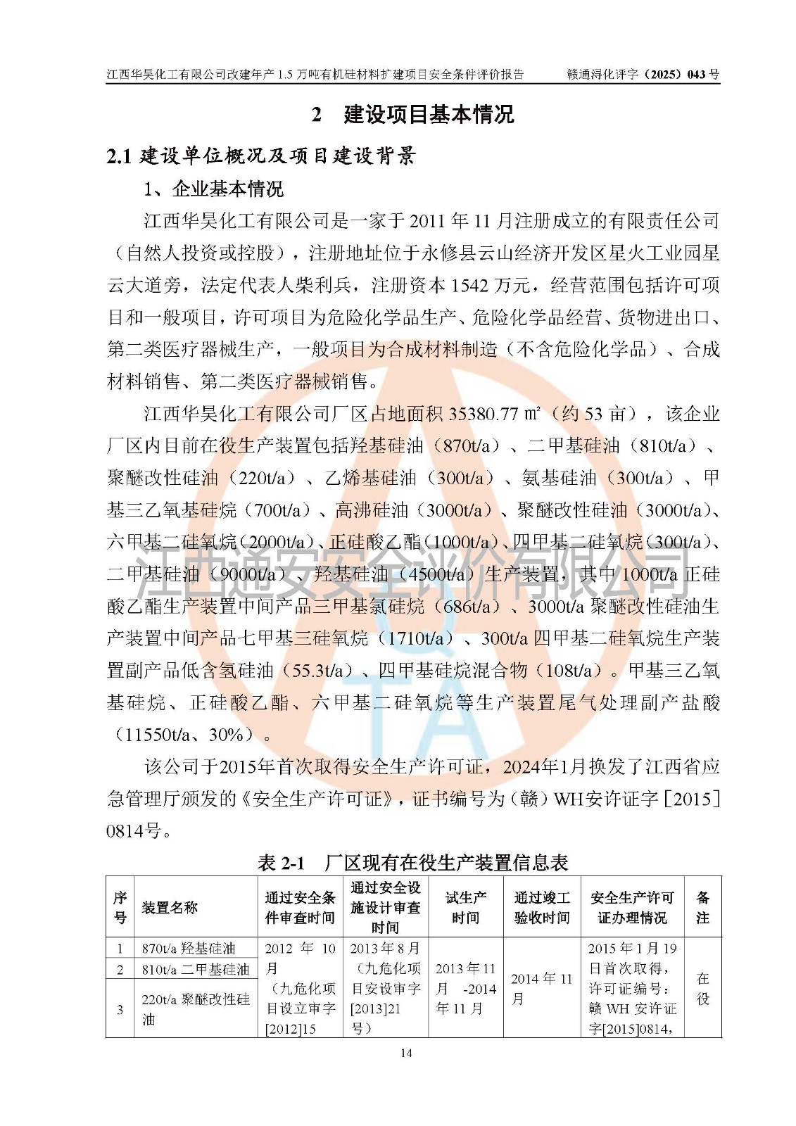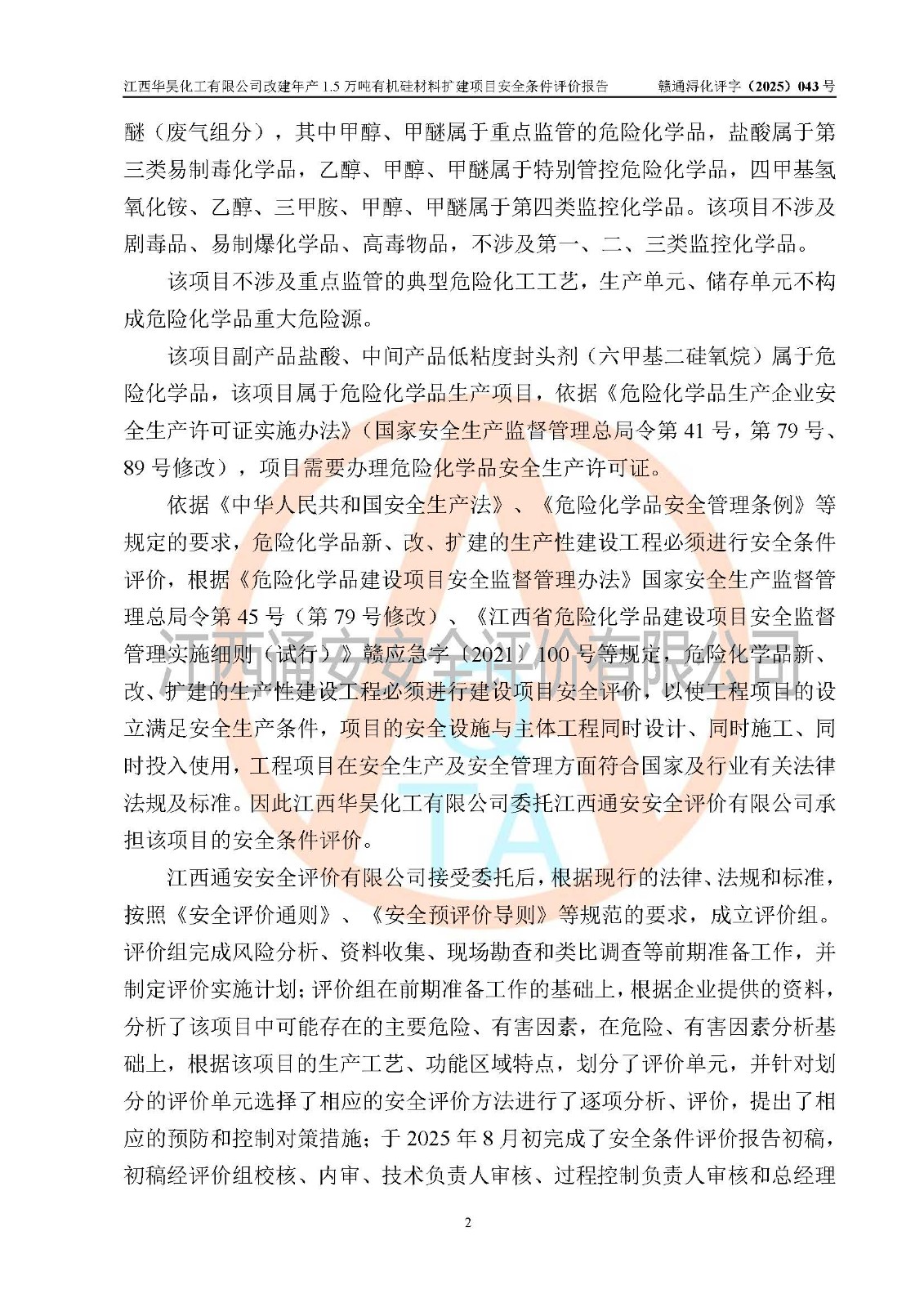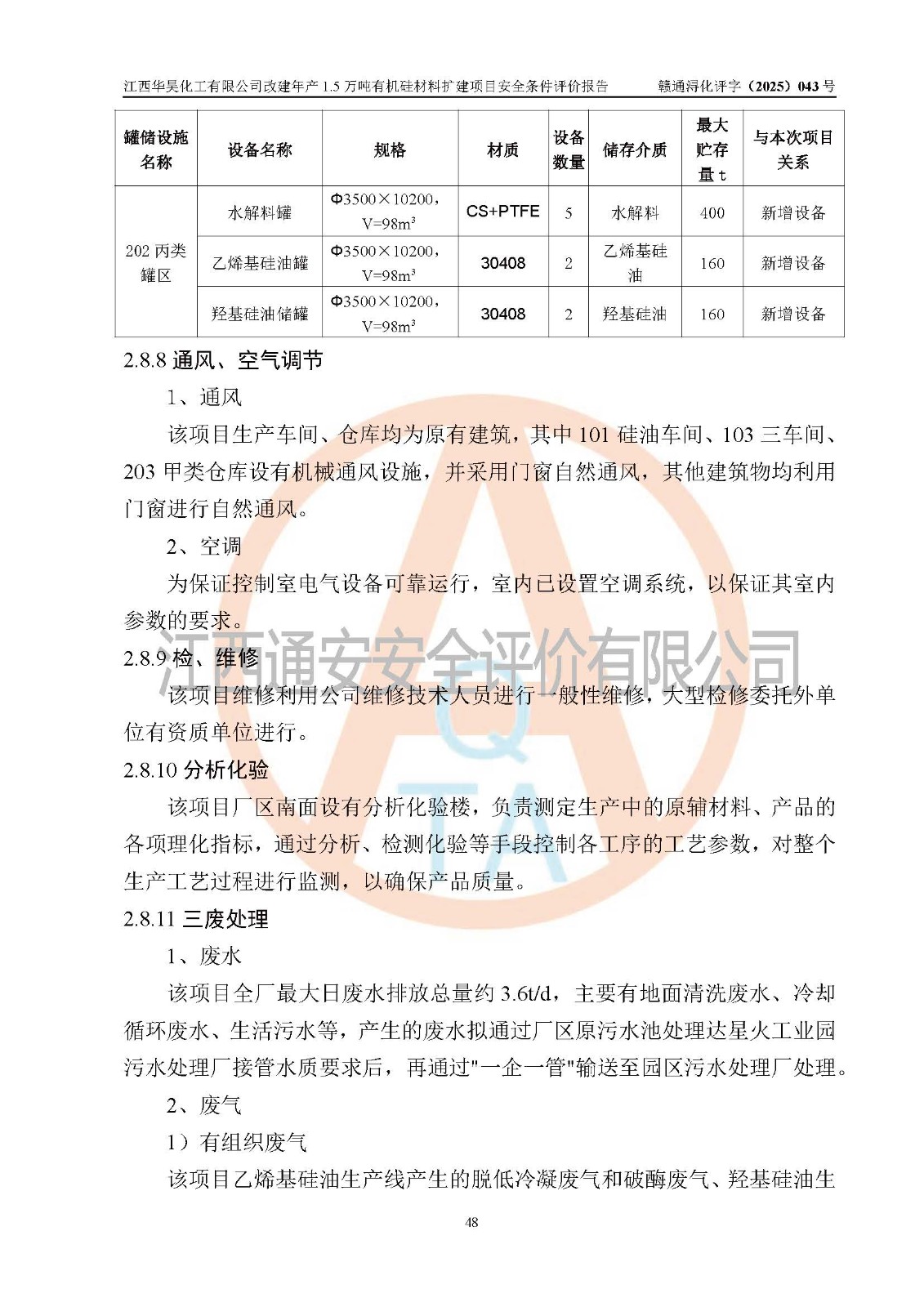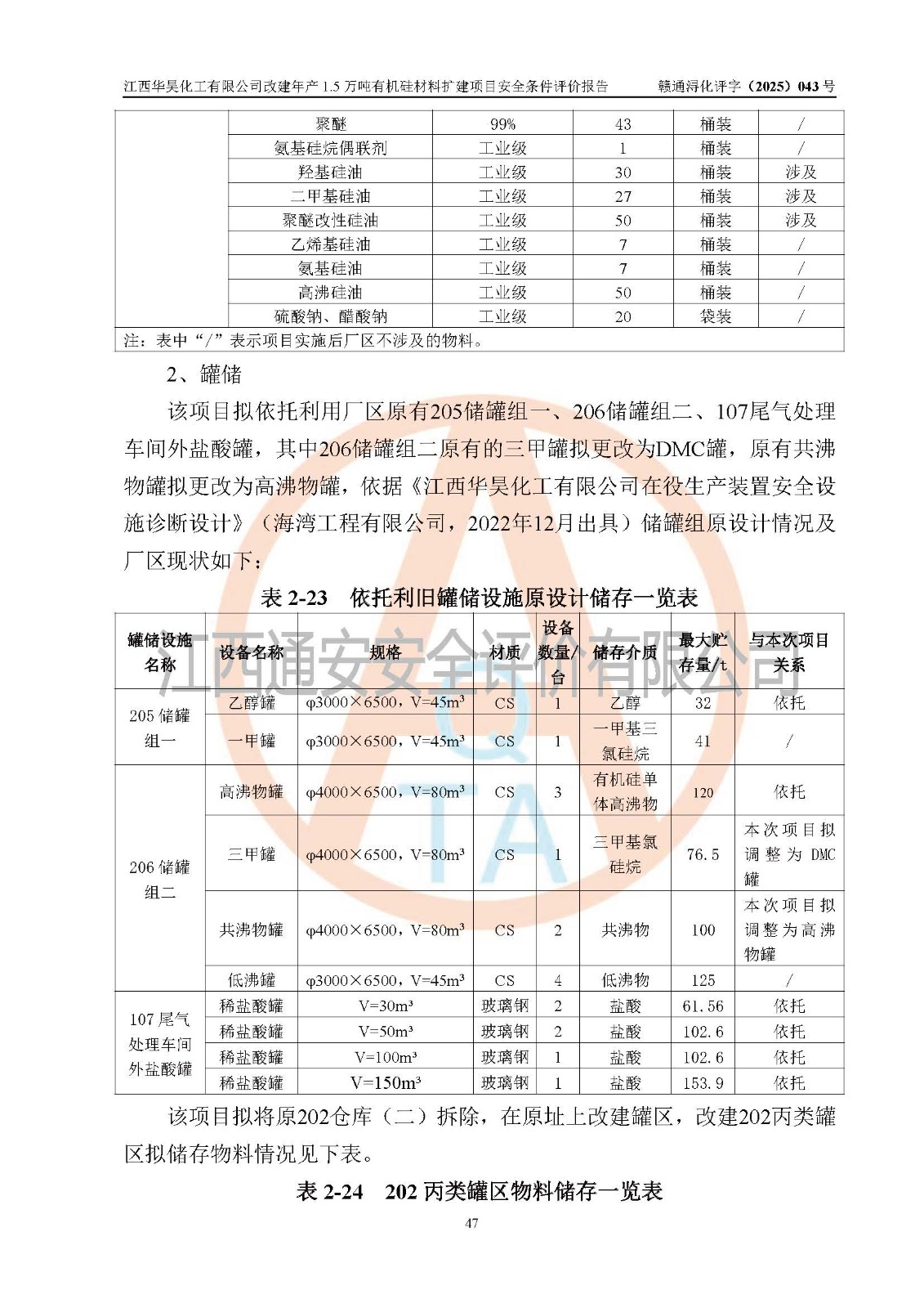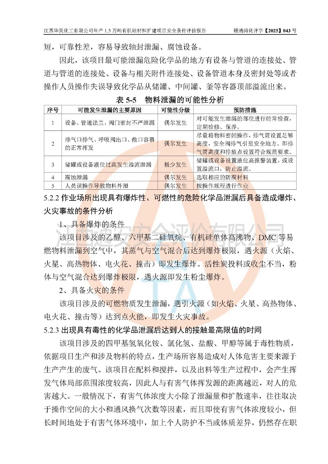 江西華昊化工有限公司是一家于2011年11月注冊(cè)成立的有限責(zé)任公司(自然人投資或控股),注冊(cè)地址位于永修縣云山經(jīng)濟(jì)開(kāi)發(fā)區(qū)星火工業(yè)園星云大道旁,法定**人柴利兵,注冊(cè)資本1542萬(wàn)元,經(jīng)營(yíng)范圍包括許可項(xiàng)目和一般項(xiàng)目,許可項(xiàng)目為危險(xiǎn)化學(xué)品生產(chǎn)、危險(xiǎn)化學(xué)品經(jīng)營(yíng)、貨物進(jìn)出口、第二類醫(yī)療器械生產(chǎn),一般項(xiàng)目為合成材料制造(不含危險(xiǎn)化學(xué)品)、合成材料銷售、第二類醫(yī)療器械銷售。 為滿足更大市場(chǎng)需求,同時(shí)解決企業(yè)原料及配套生產(chǎn)的需求,江西華昊化工有限公司擬投資5000萬(wàn)元將廠區(qū)101硅油車間、102二車間原有項(xiàng)目改建為年產(chǎn)1.5萬(wàn)噸有機(jī)硅材料擴(kuò)建項(xiàng)目(以下簡(jiǎn)稱“該項(xiàng)目”)。 該項(xiàng)目生產(chǎn)過(guò)程涉及的化學(xué)反應(yīng)包括聚合(常壓)、水解、中和,涉及蒸餾、壓濾、流體輸送、熱交換、產(chǎn)品包裝等化工單元操作過(guò)程。該項(xiàng)目涉及的危險(xiǎn)化學(xué)品包括四甲基氫氧化銨、氫氧化鉀、磷酸、30%氫氧化鈉溶液、六甲基二硅氧烷、乙醇、氯化氫、鹽酸、氮?dú)?/span>、DMC(二甲基環(huán)硅氧烷的混合物)、有機(jī)硅單體高沸物、**胺(廢氣組分)、甲醇(廢氣組分)、甲醚(廢氣組分),其中甲醇、甲醚屬于重點(diǎn)監(jiān)管的危險(xiǎn)化學(xué)品,鹽酸屬于第三類易制毒化學(xué)品,乙醇、甲醇、甲醚屬于特別管控危險(xiǎn)化學(xué)品,四甲基氫氧化銨、乙醇、**胺、甲醇、甲醚屬于第四類監(jiān)控化學(xué)品。該項(xiàng)目不涉及劇毒品、易制爆化學(xué)品、高毒物品,不涉及**、二、三類監(jiān)控化學(xué)品。 該項(xiàng)目不涉及重點(diǎn)監(jiān)管的典型危險(xiǎn)化工工藝,生產(chǎn)單元、儲(chǔ)存單元不構(gòu)成危險(xiǎn)化學(xué)品重大危險(xiǎn)源。 該項(xiàng)目副產(chǎn)品鹽酸、中間產(chǎn)品低粘度封頭劑(六甲基二硅氧烷)屬于危險(xiǎn)化學(xué)品,該項(xiàng)目屬于危險(xiǎn)化學(xué)品生產(chǎn)項(xiàng)目,依據(jù)《危險(xiǎn)化學(xué)品生產(chǎn)企業(yè)安全生產(chǎn)許可證實(shí)施辦法》(**安全生產(chǎn)監(jiān)督管理總局令第41號(hào),第79號(hào)、89號(hào)修改),項(xiàng)目需要辦理危險(xiǎn)化學(xué)品安全生產(chǎn)許可證。 |
