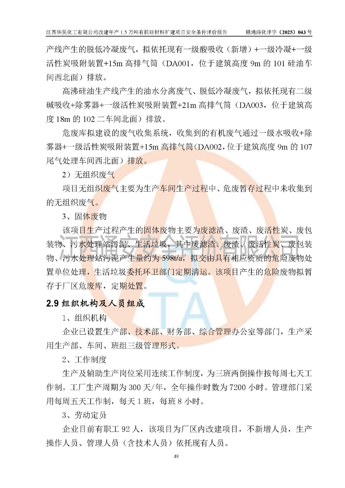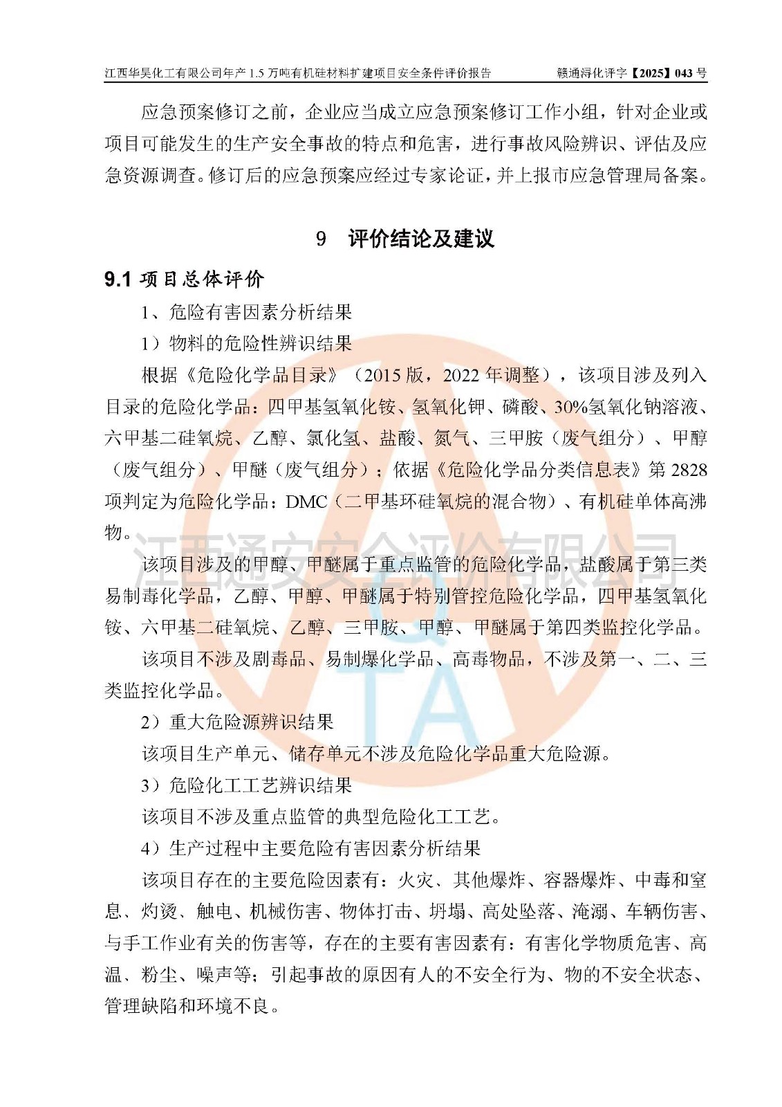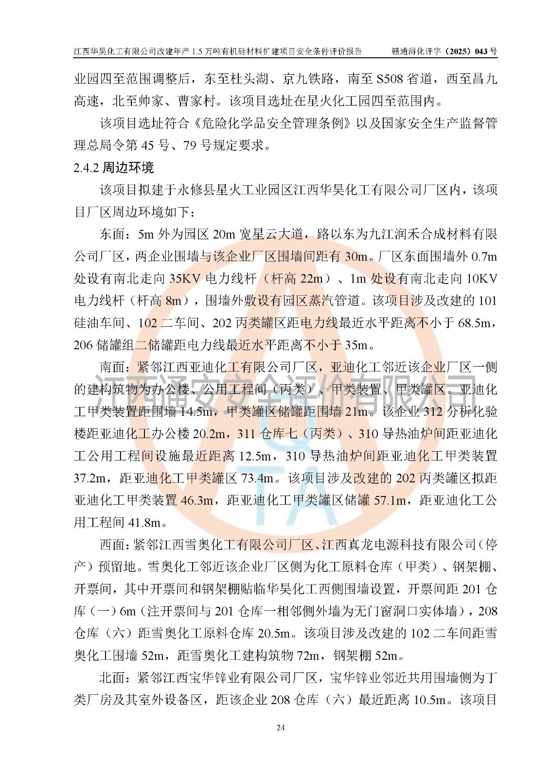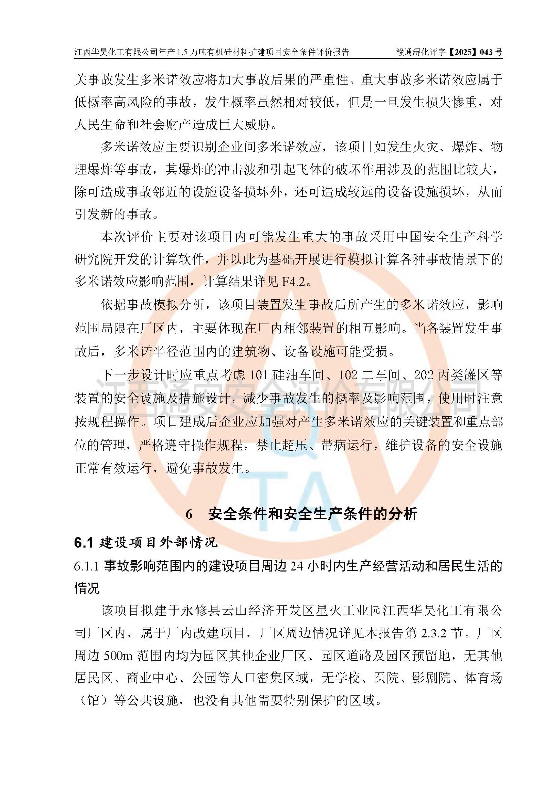 江西華昊化工有限公司是一家于2011年11月注冊(cè)成立的有限責(zé)任公司(自然人投資或控股),注冊(cè)地址位于永修縣云山經(jīng)濟(jì)開(kāi)發(fā)區(qū)星火工業(yè)園星云大道旁,法定**人柴利兵,注冊(cè)資本1542萬(wàn)元,經(jīng)營(yíng)范圍包括許可項(xiàng)目和一般項(xiàng)目,許可項(xiàng)目為危險(xiǎn)化學(xué)品生產(chǎn)、危險(xiǎn)化學(xué)品經(jīng)營(yíng)、貨物進(jìn)出口、第二類醫(yī)療器械生產(chǎn),一般項(xiàng)目為合成材料制造(不含危險(xiǎn)化學(xué)品)、合成材料銷售、第二類醫(yī)療器械銷售。 為滿足更大市場(chǎng)需求,同時(shí)解決企業(yè)原料及配套生產(chǎn)的需求,江西華昊化工有限公司擬投資5000萬(wàn)元將廠區(qū)101硅油車間、102二車間原有項(xiàng)目改建為年產(chǎn)1.5萬(wàn)噸有機(jī)硅材料擴(kuò)建項(xiàng)目(以下簡(jiǎn)稱“該項(xiàng)目”)。 該項(xiàng)目生產(chǎn)過(guò)程涉及的化學(xué)反應(yīng)包括聚合(常壓)、水解、中和,涉及蒸餾、壓濾、流體輸送、熱交換、產(chǎn)品包裝等化工單元操作過(guò)程。該項(xiàng)目涉及的危險(xiǎn)化學(xué)品包括四甲基氫氧化銨、氫氧化鉀、磷酸、30%氫氧化鈉溶液、六甲基二硅氧烷、乙醇、氯化氫、鹽酸、氮?dú)?/span>、DMC(二甲基環(huán)硅氧烷的混合物)、有機(jī)硅單體高沸物、**胺(廢氣組分)、甲醇(廢氣組分)、甲醚(廢氣組分),其中甲醇、甲醚屬于重點(diǎn)監(jiān)管的危險(xiǎn)化學(xué)品,鹽酸屬于第三類易制毒化學(xué)品,乙醇、甲醇、甲醚屬于特別管控危險(xiǎn)化學(xué)品,四甲基氫氧化銨、乙醇、**胺、甲醇、甲醚屬于第四類監(jiān)控化學(xué)品。該項(xiàng)目不涉及劇毒品、易制爆化學(xué)品、高毒物品,不涉及**、二、三類監(jiān)控化學(xué)品。 該項(xiàng)目不涉及重點(diǎn)監(jiān)管的典型危險(xiǎn)化工工藝,生產(chǎn)單元、儲(chǔ)存單元不構(gòu)成危險(xiǎn)化學(xué)品重大危險(xiǎn)源。 該項(xiàng)目副產(chǎn)品鹽酸、中間產(chǎn)品低粘度封頭劑(六甲基二硅氧烷)屬于危險(xiǎn)化學(xué)品,該項(xiàng)目屬于危險(xiǎn)化學(xué)品生產(chǎn)項(xiàng)目,依據(jù)《危險(xiǎn)化學(xué)品生產(chǎn)企業(yè)安全生產(chǎn)許可證實(shí)施辦法》(**安全生產(chǎn)監(jiān)督管理總局令第41號(hào),第79號(hào)、89號(hào)修改),項(xiàng)目需要辦理危險(xiǎn)化學(xué)品安全生產(chǎn)許可證。 |
