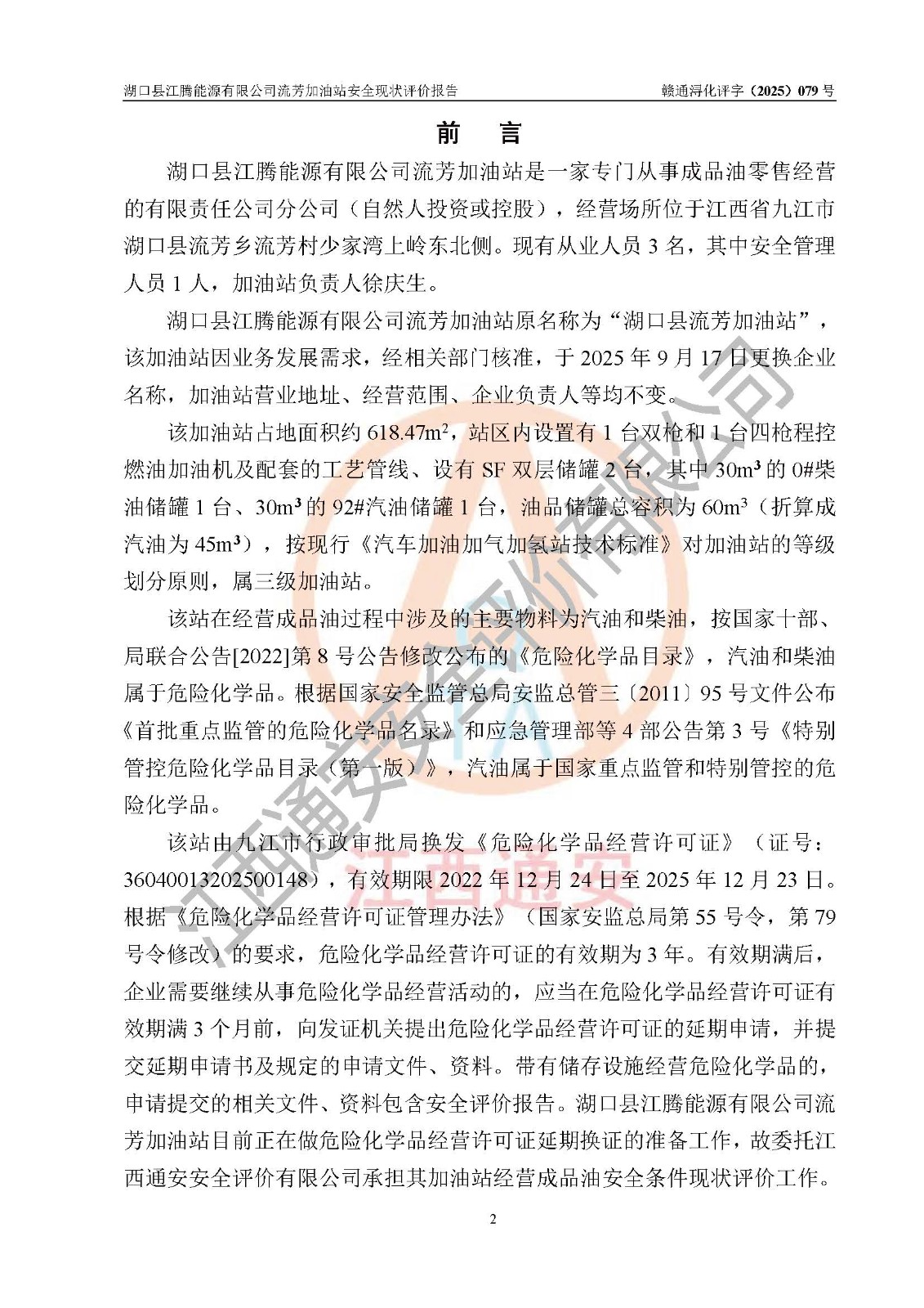 評(píng)價(jià)報(bào)告名稱(chēng) | 湖口縣江騰能源有限公司流芳加油站安全現(xiàn)狀評(píng)價(jià)報(bào)告 | |||