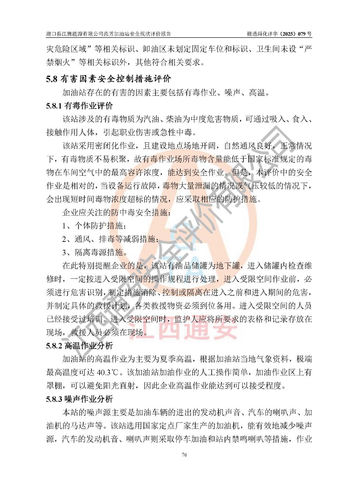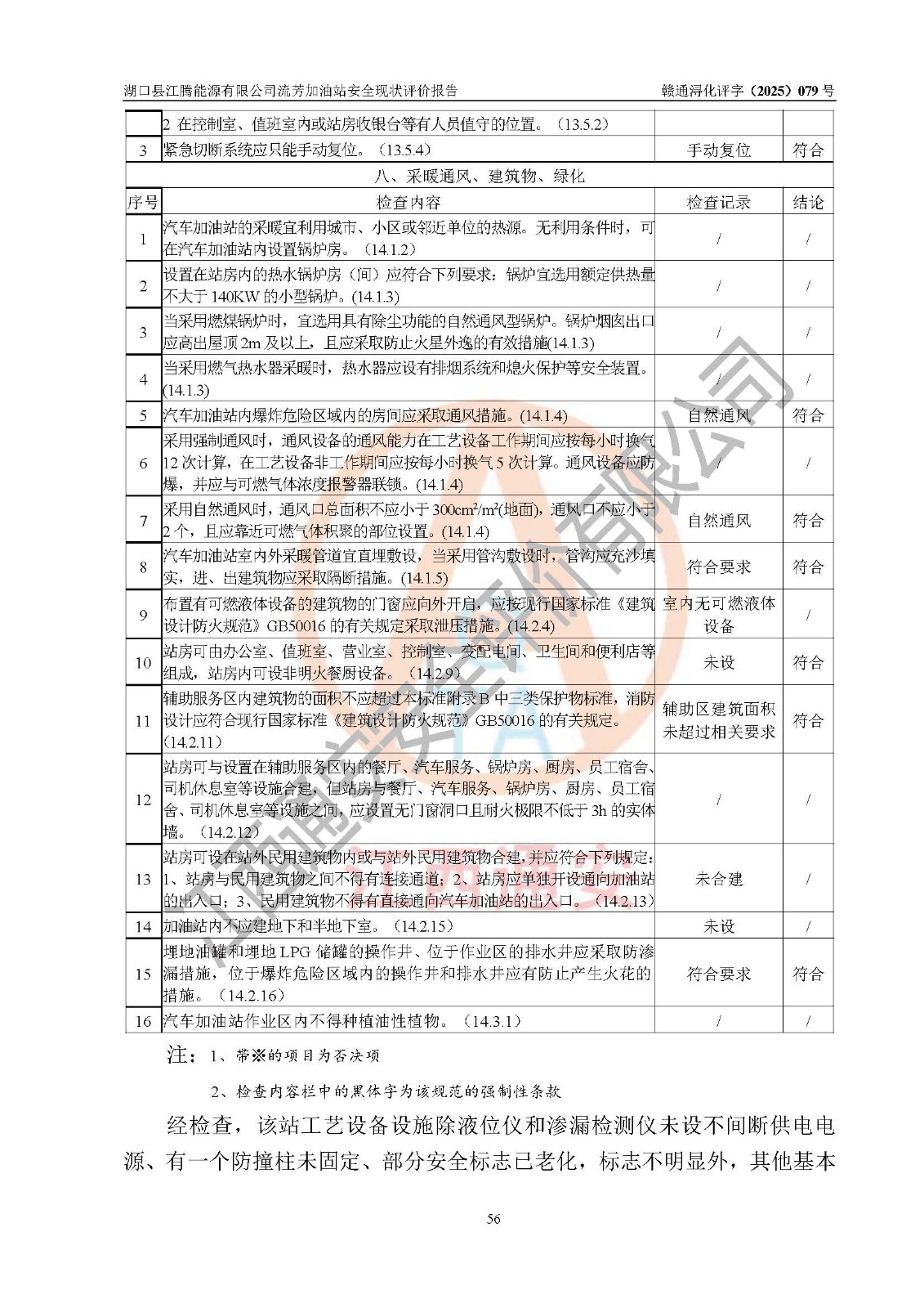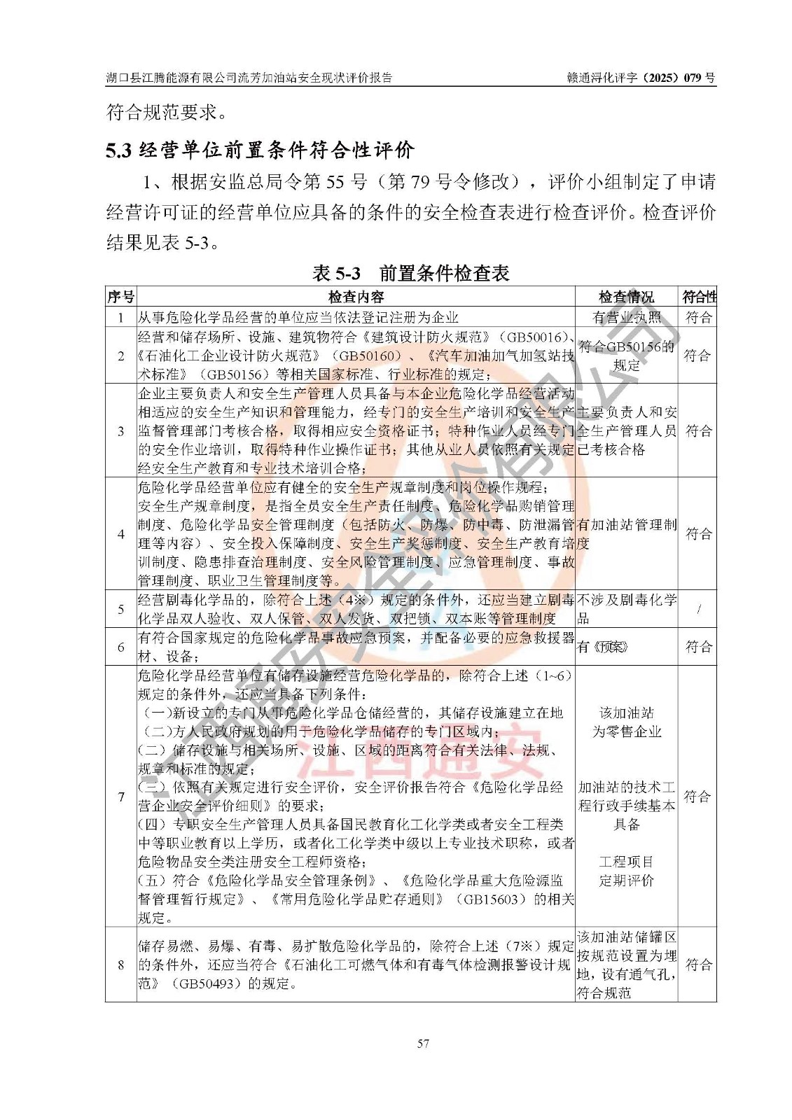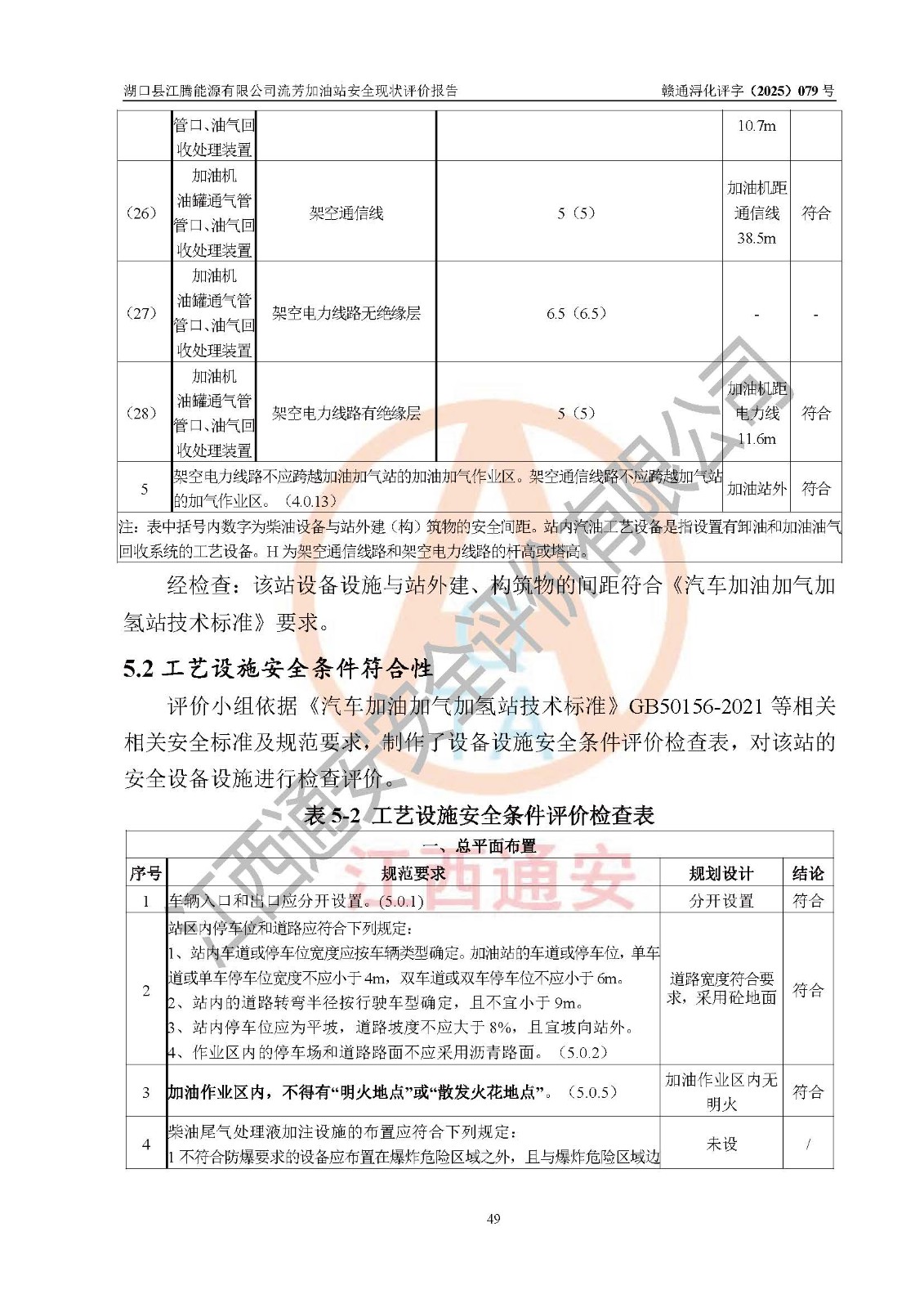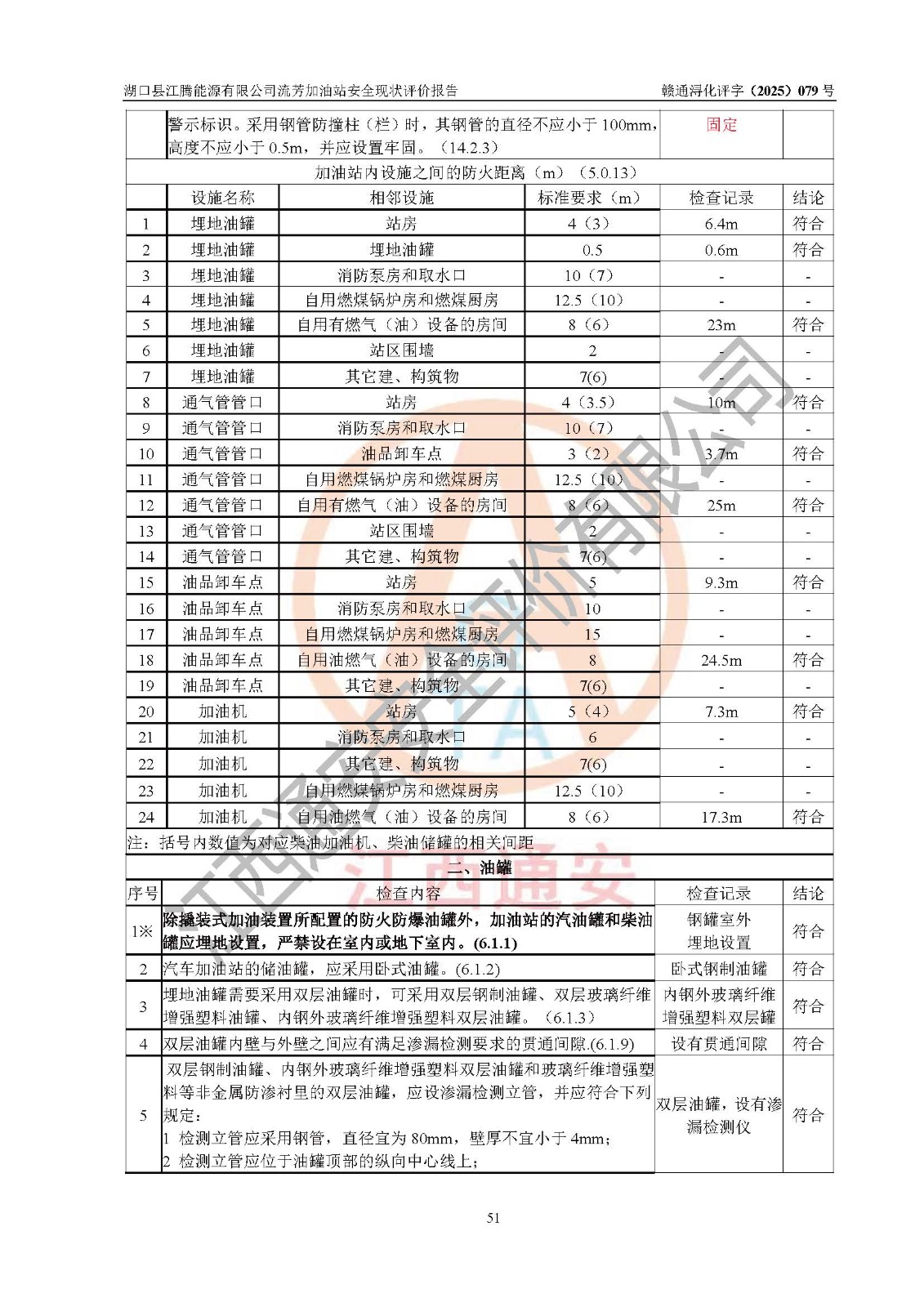 評(píng)價(jià)結(jié)論 | 湖口縣江騰能源有限公司流芳加油站涉及的安全條件、安全經(jīng)營(yíng)條件、安全生產(chǎn)管理符合《危險(xiǎn)化學(xué)品經(jīng)營(yíng)許可證管理辦法》、《汽車(chē)加油加氣加氫站技術(shù)標(biāo)準(zhǔn)》等**有關(guān)法規(guī)、標(biāo)準(zhǔn)、規(guī)范要求,能滿足危險(xiǎn)化學(xué)品經(jīng)營(yíng)安全條件。 | |||